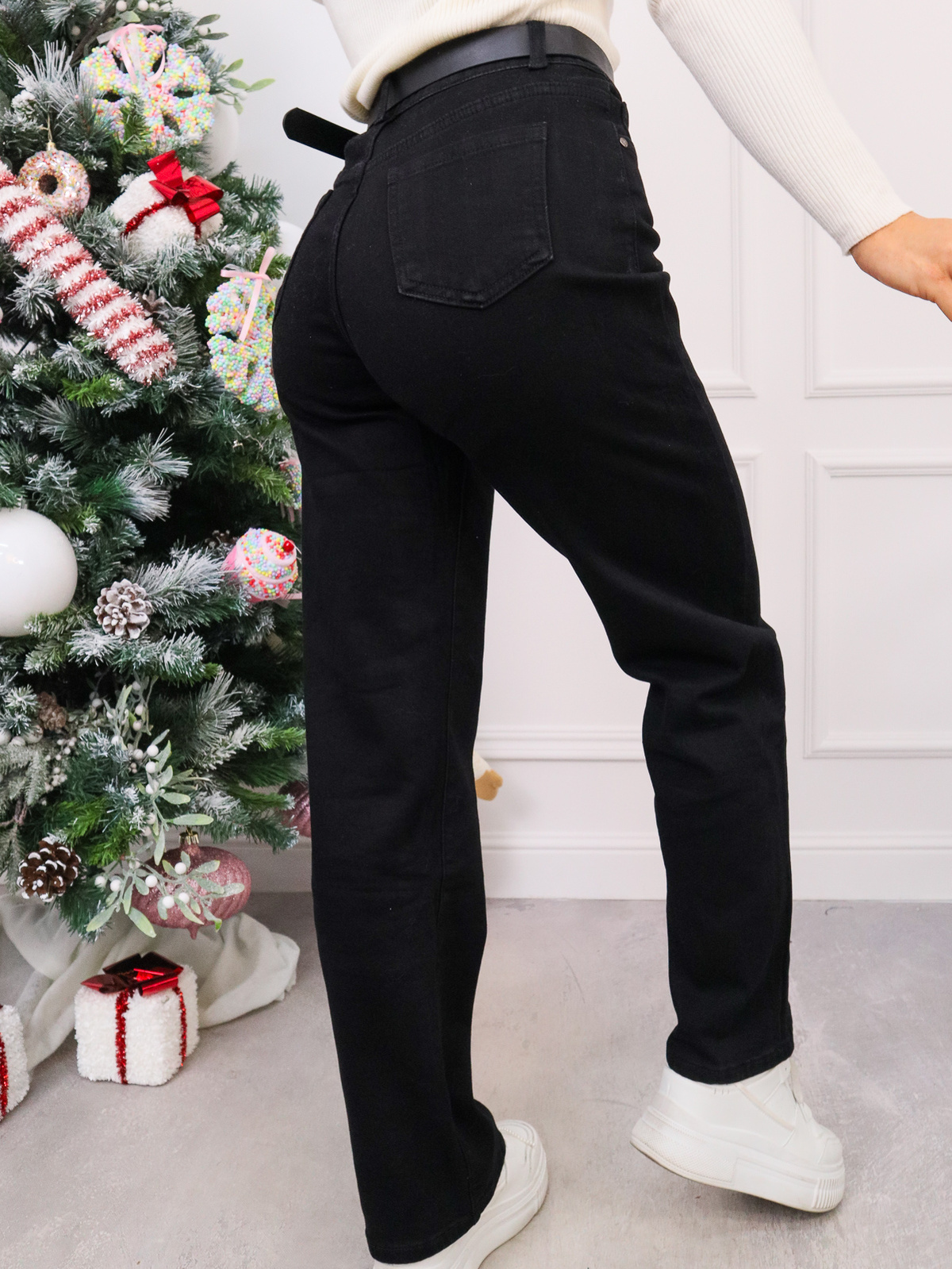 SPODNIE JEANSOWE O PROSTYM KROJU I WYSOKIM STANEM + PASEK PLUS SIZE- CZARNE