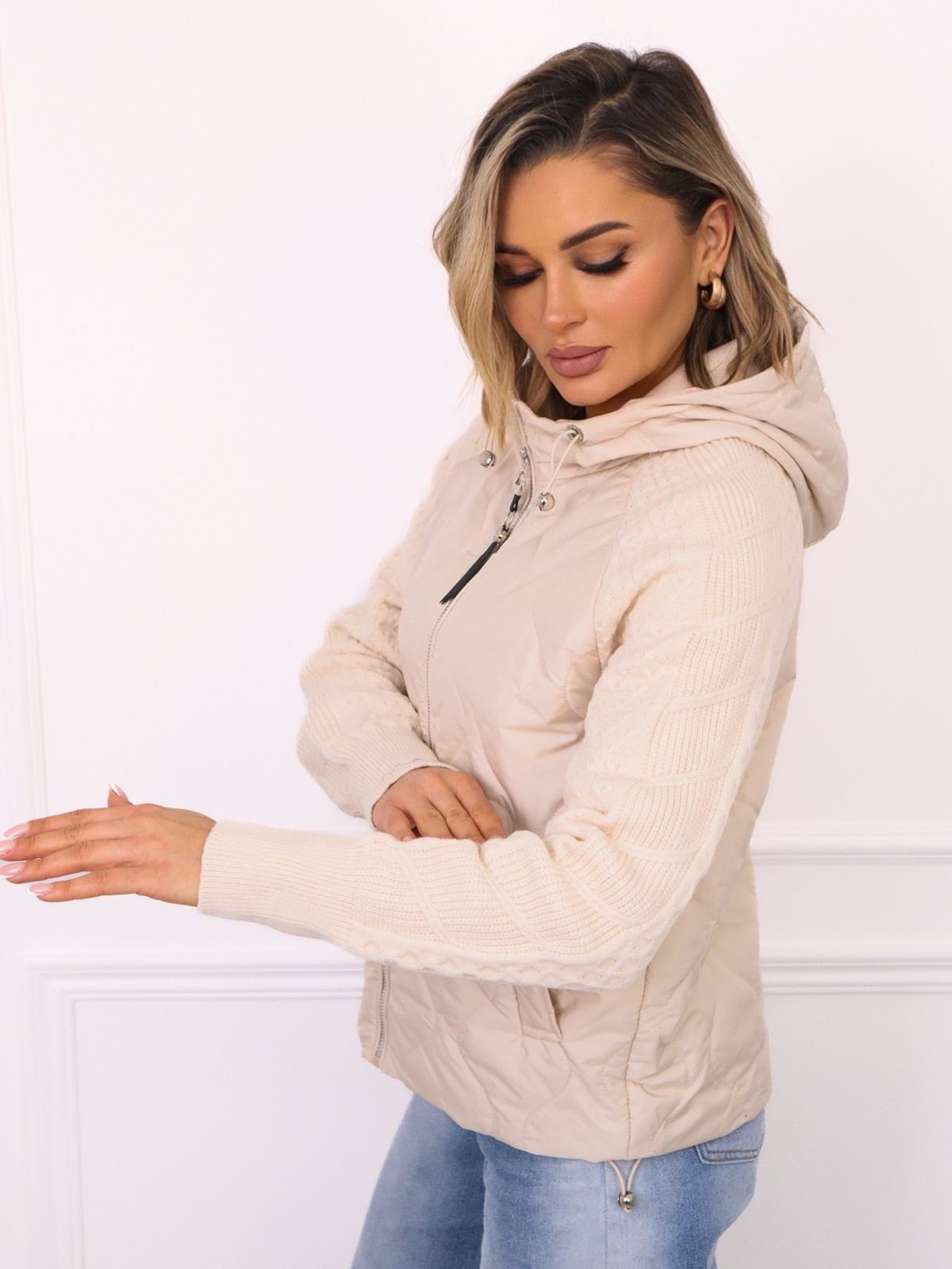 KURTKA PRZEJŚCIOWA ZE SWETERKOWYMI RĘKAWAMI- JASNOBEŻOWA