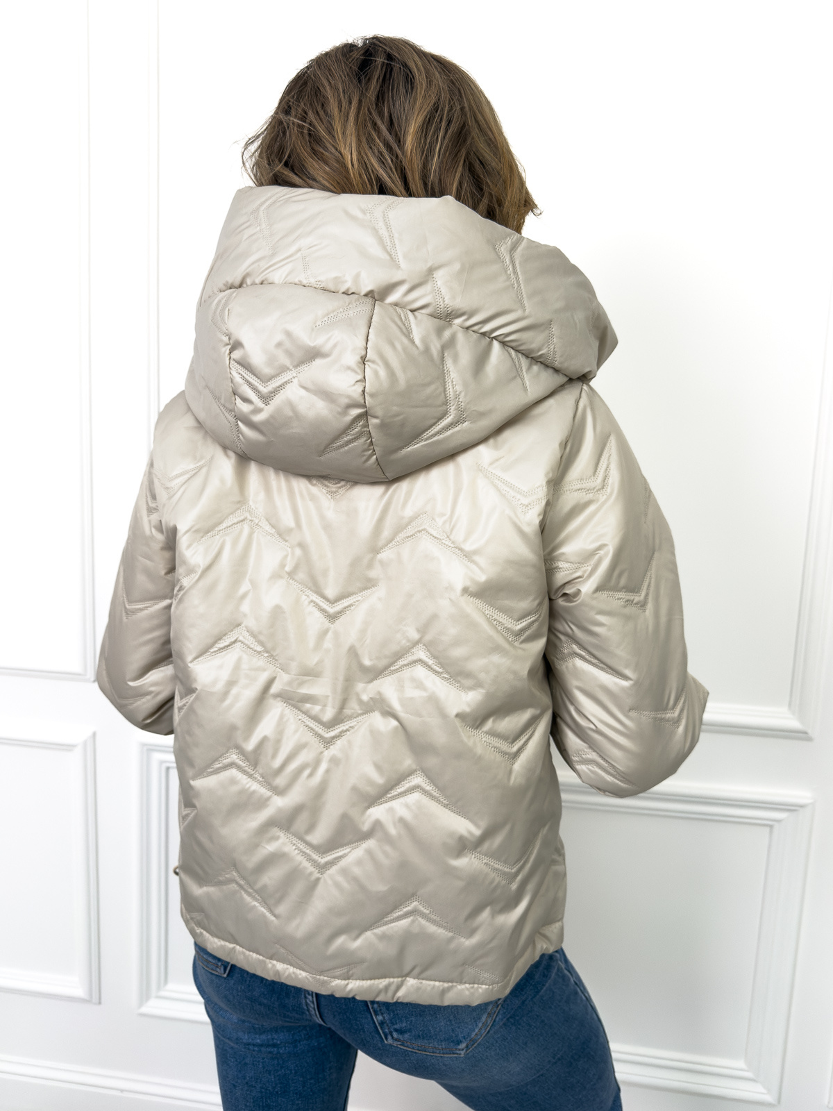 KURTKA PRZEJŚCIOWA Z KAPTUREM I ŚCIĄGACZAMI PO BOKACH- JASNOBEŻOWA