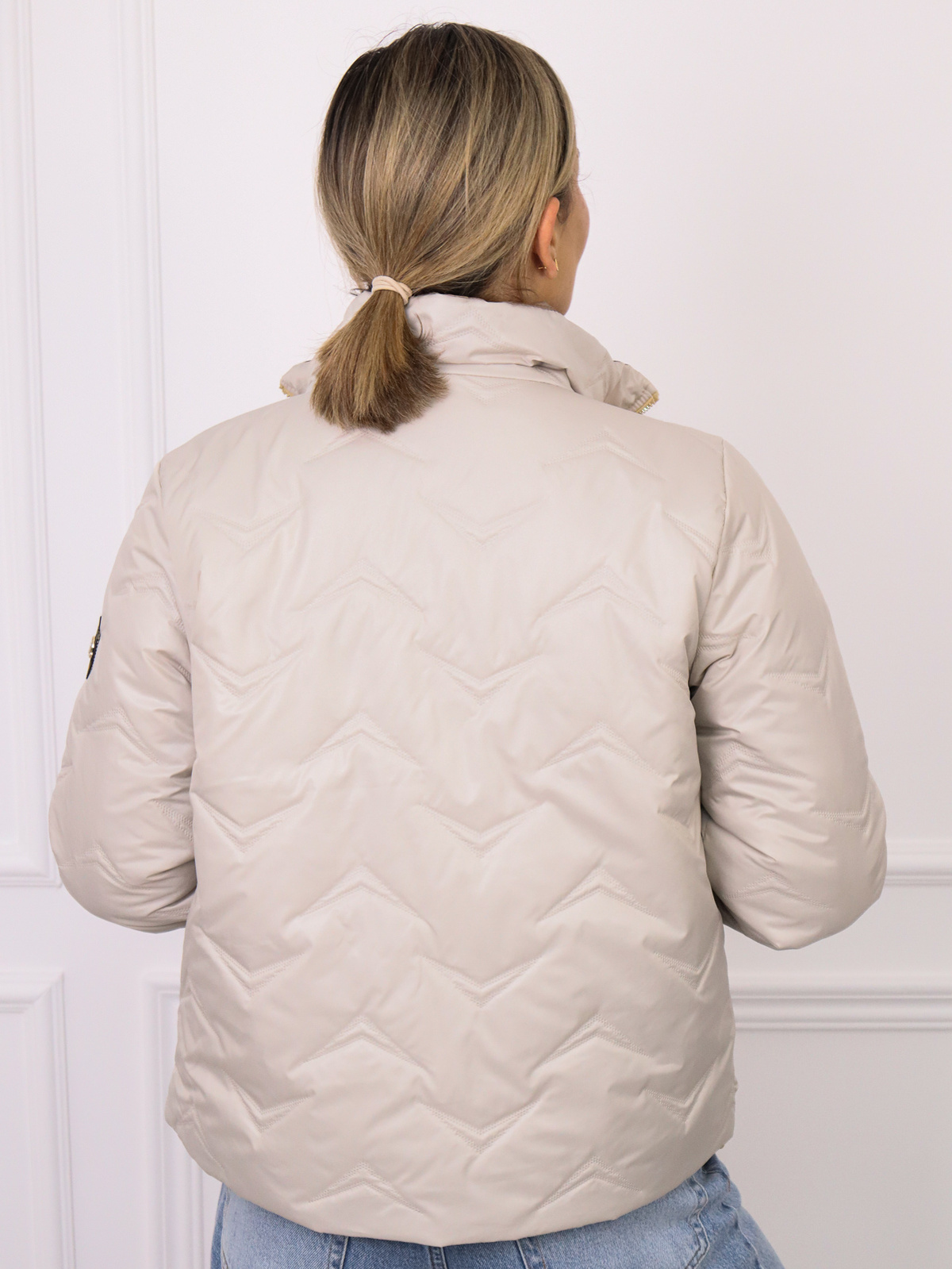 KURTKA PRZEJŚCIOWA PIKOWANA Z NASZYWKĄ NA RĘKAWIE- JASNOBEŻOWA