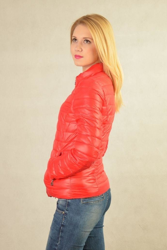 Kurtka pikowana ortalionowa, zapinana na zamek, dwie kieszenie po bokach.