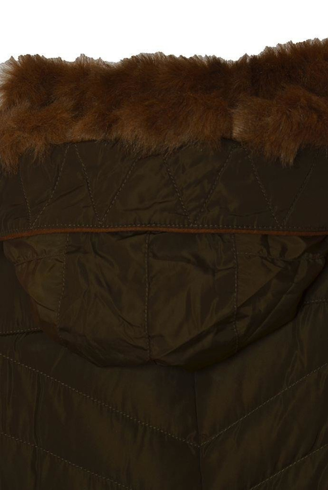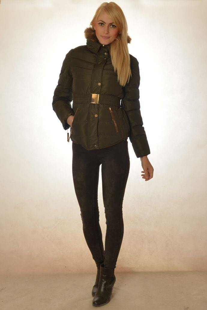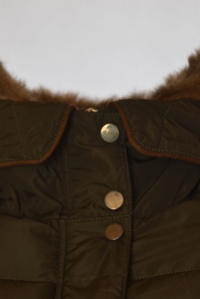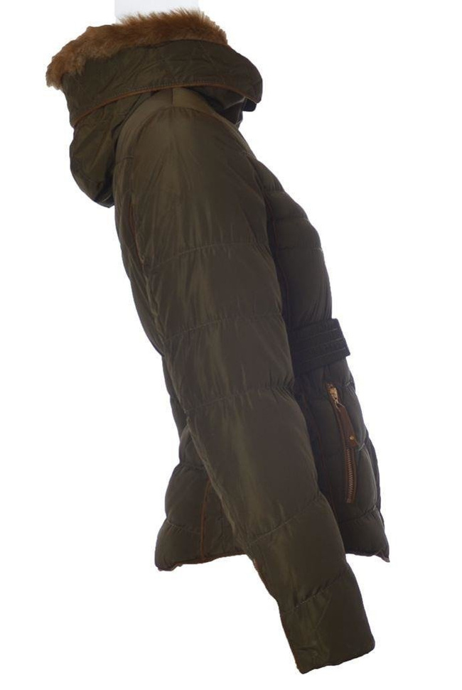 Krótka taliowana kurtka, zapinana na suwak, oraz pasek. Kurtka posiada kaptur z ciepłym i miłym w dotyku futerkiem, przy rękawach suwaki.