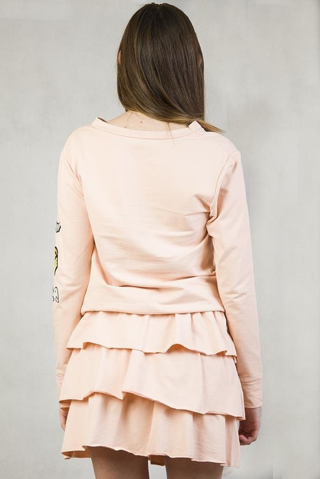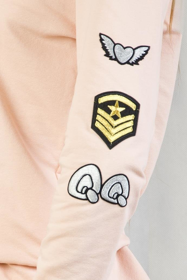 Jasno-różowa bluzka na długi rękaw z naszywkami
