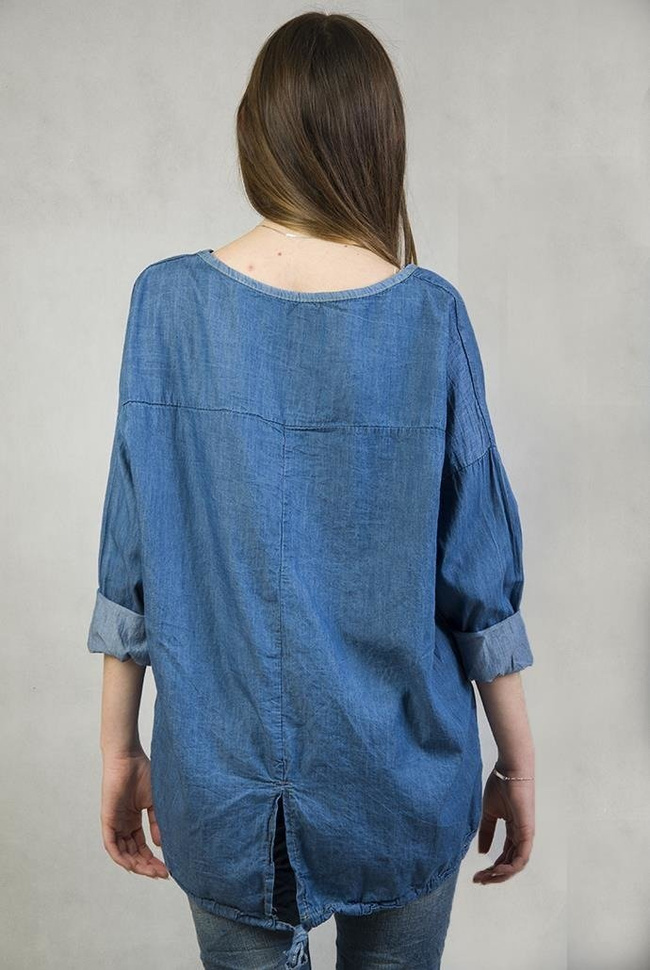 Jasno niebieska, asymetryczna bluzka jeansowa
