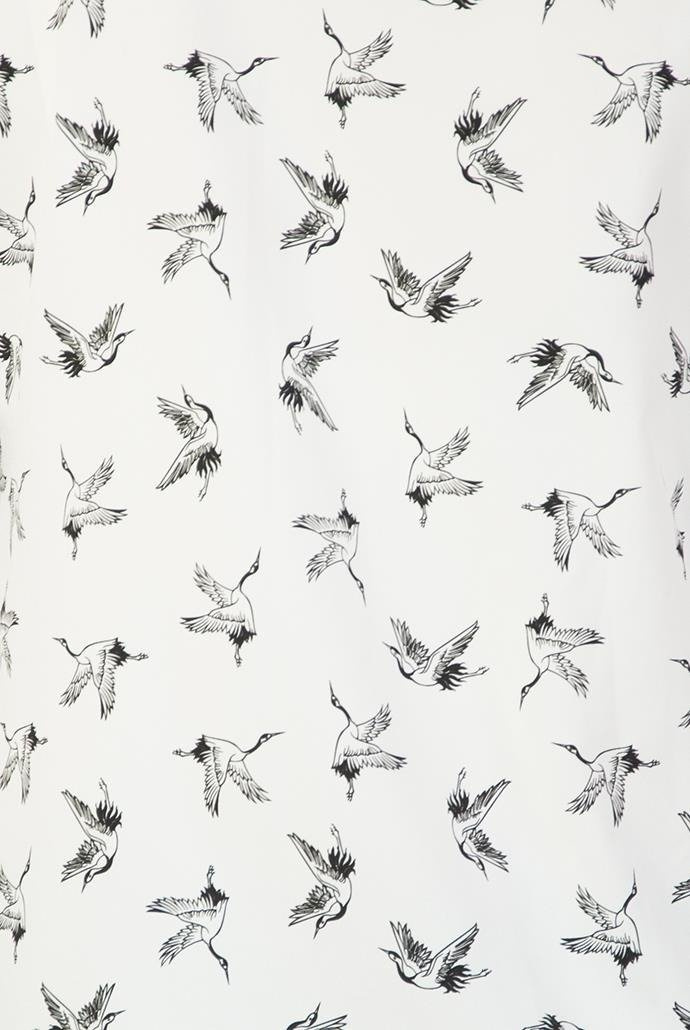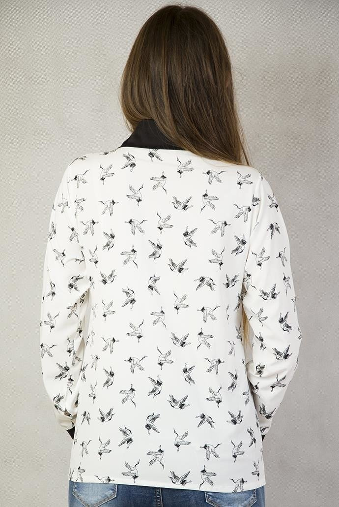 Koszula ekri ze sztampą w czaple oraz czarnym kołnierzem i mankietami, zapinana na guziki.
