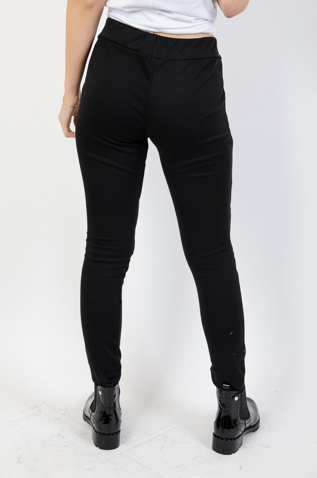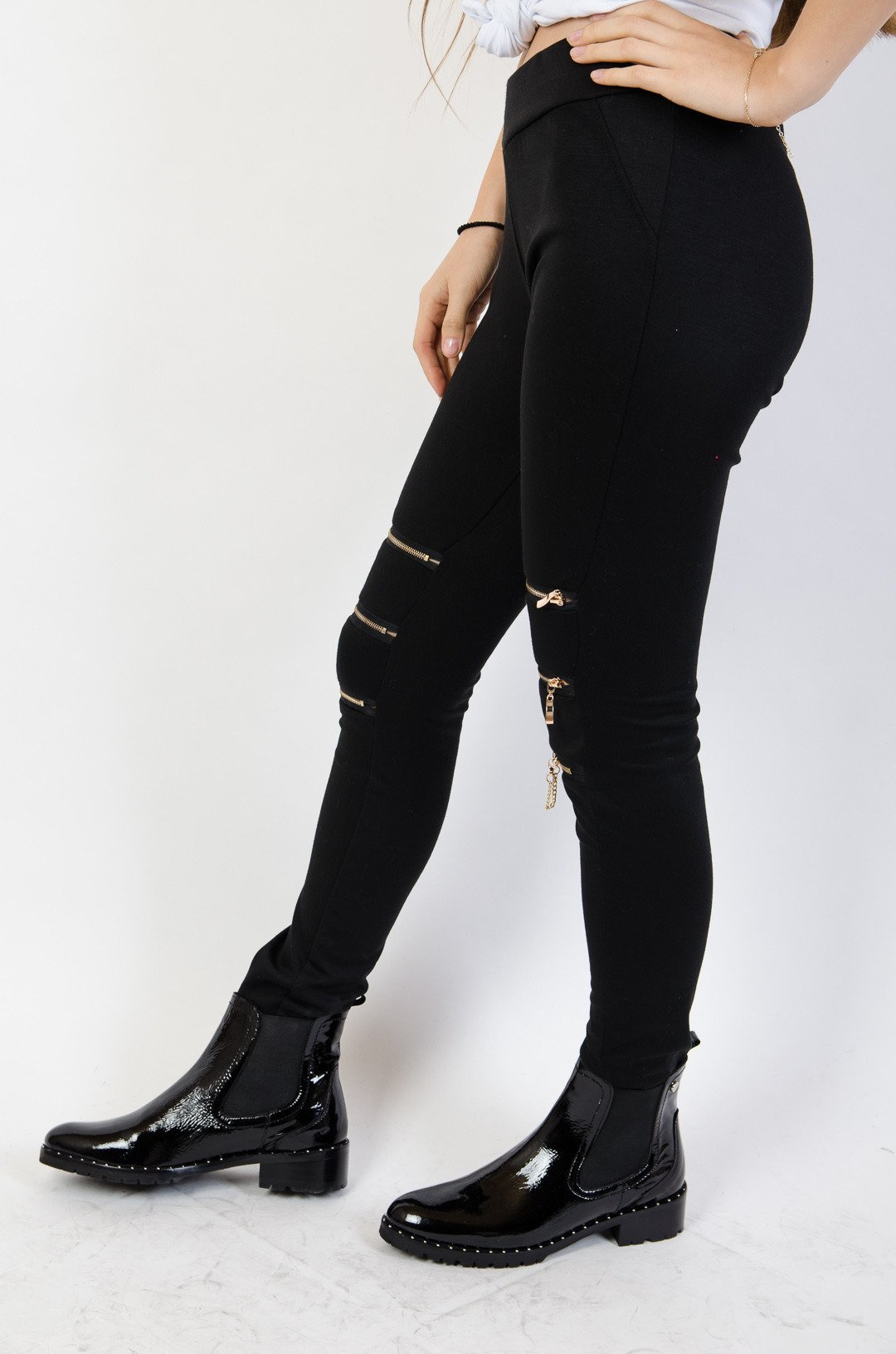 Czarne spodnie - legginsy z zamkami na nogawkach.