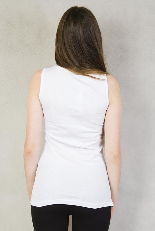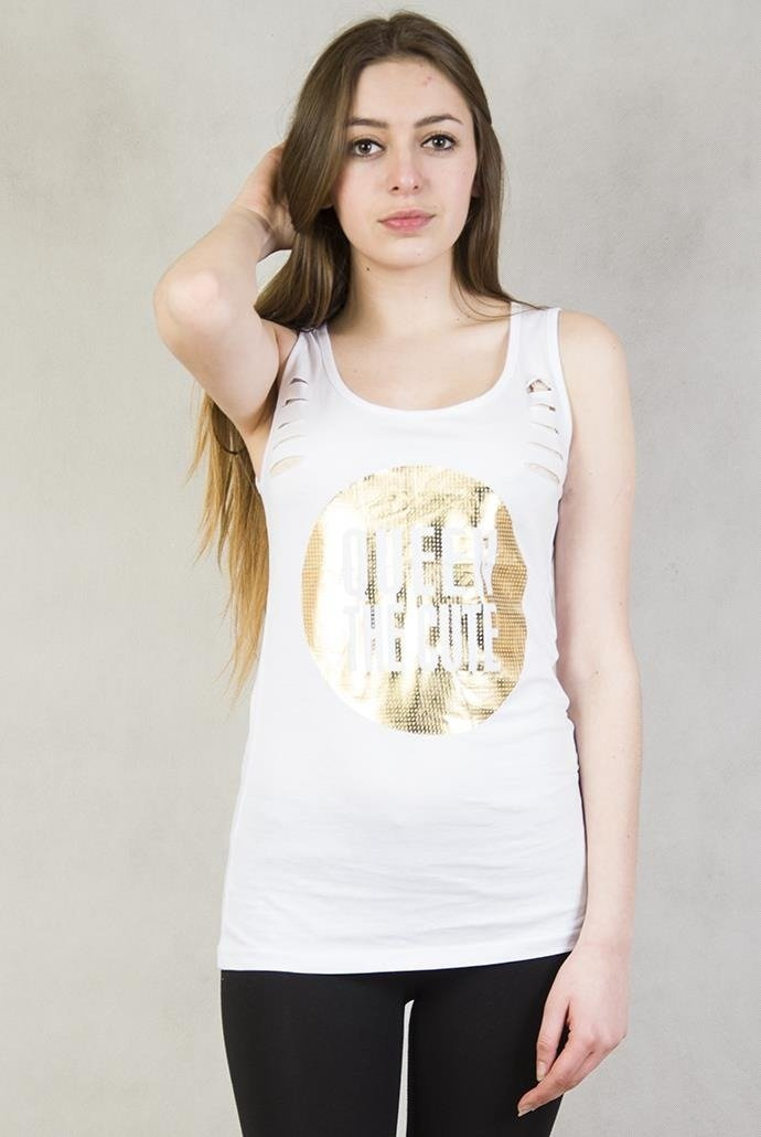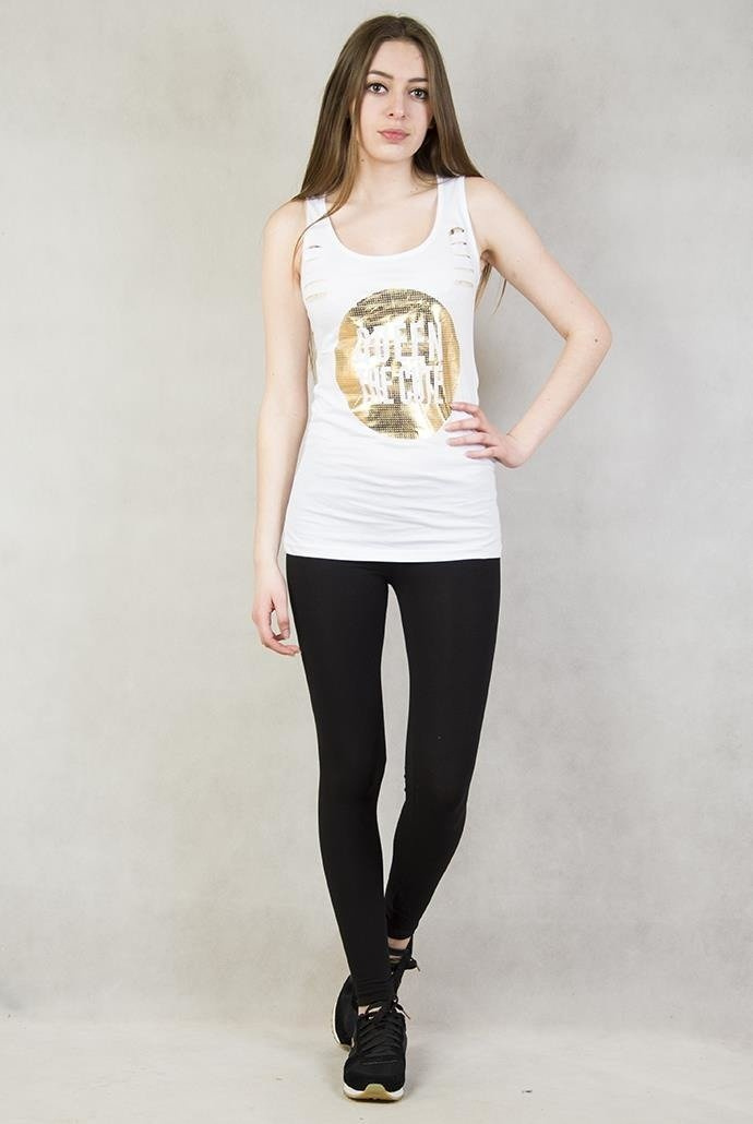 Biała bluzka na ramiączka z napisem "Queen the cute"