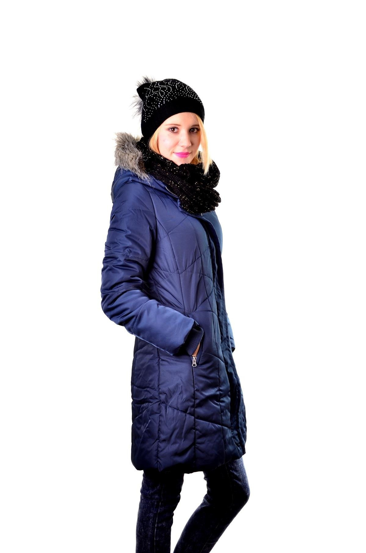 Ciepły, długi płaszcz z kapturem, wykończonym futerkiem. Z przodu dwie kieszenie. Zapinany na zamek.