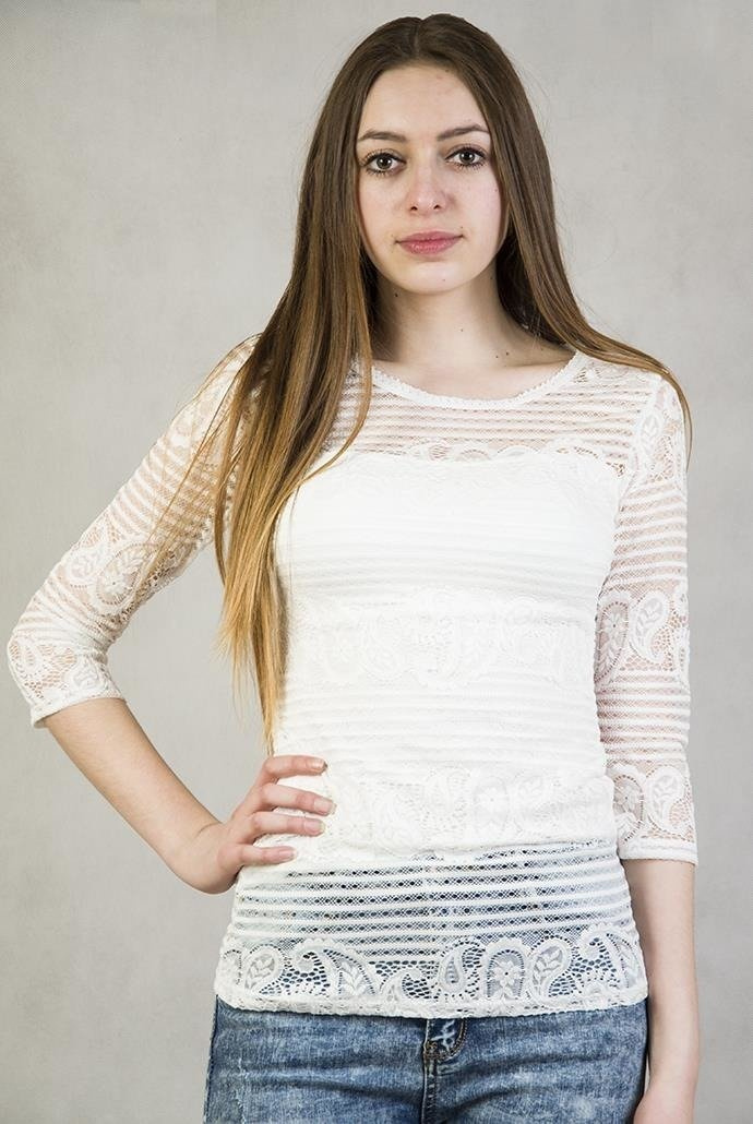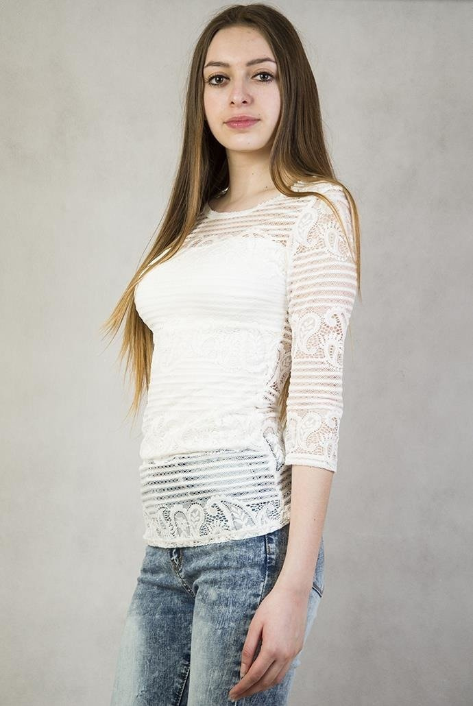 Biała bluzka z wkładkami w dekolcie, obszyta koronką