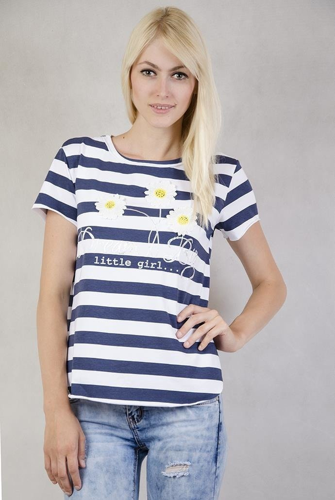 Bluzka w biało-granatowe paski z trzema stokrotkami