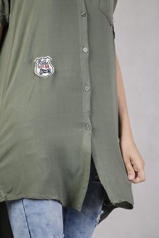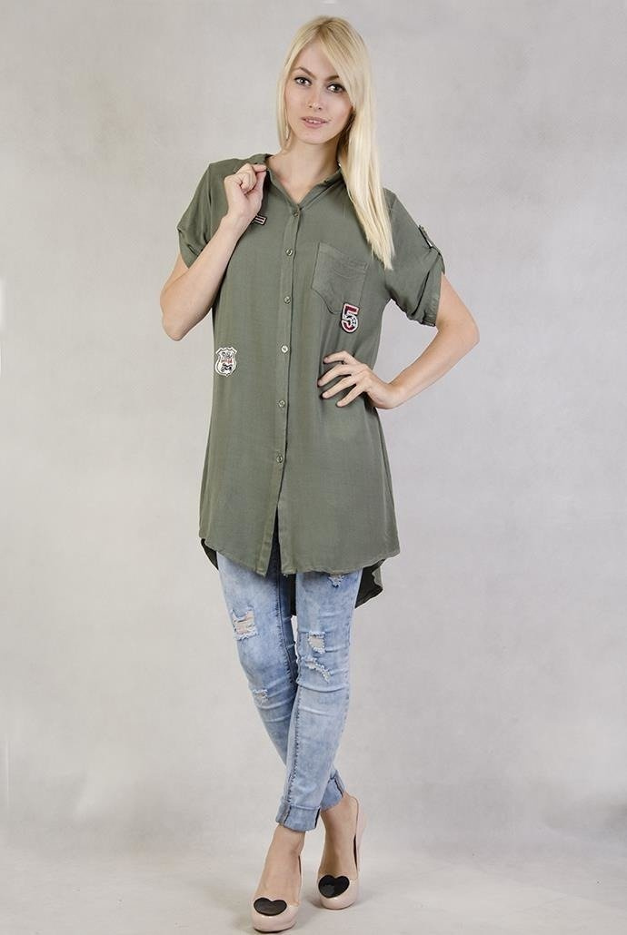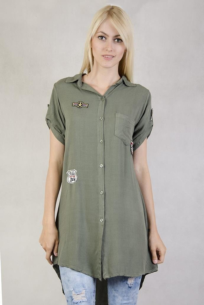 Koszula khaki z naszywkami i przedłużanym tyłem