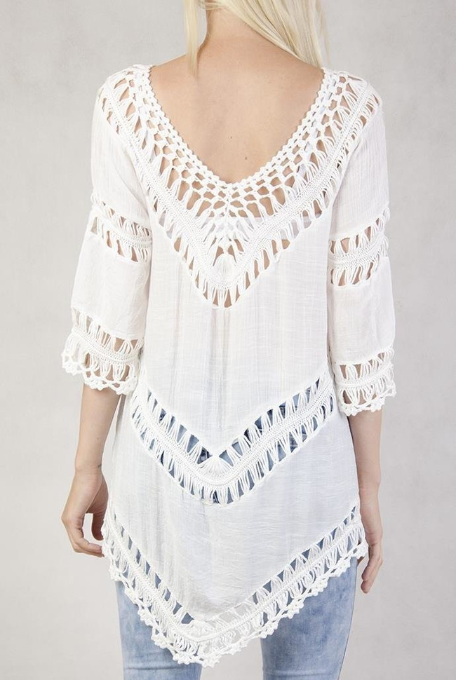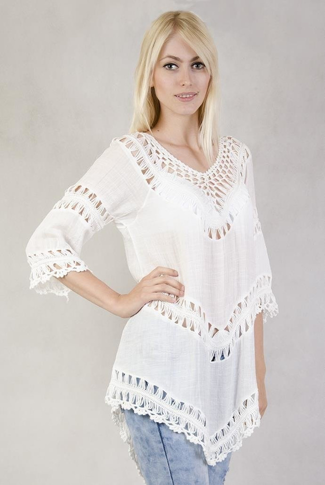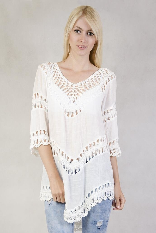 Biała, asymetryczna bluzka w stylu boho