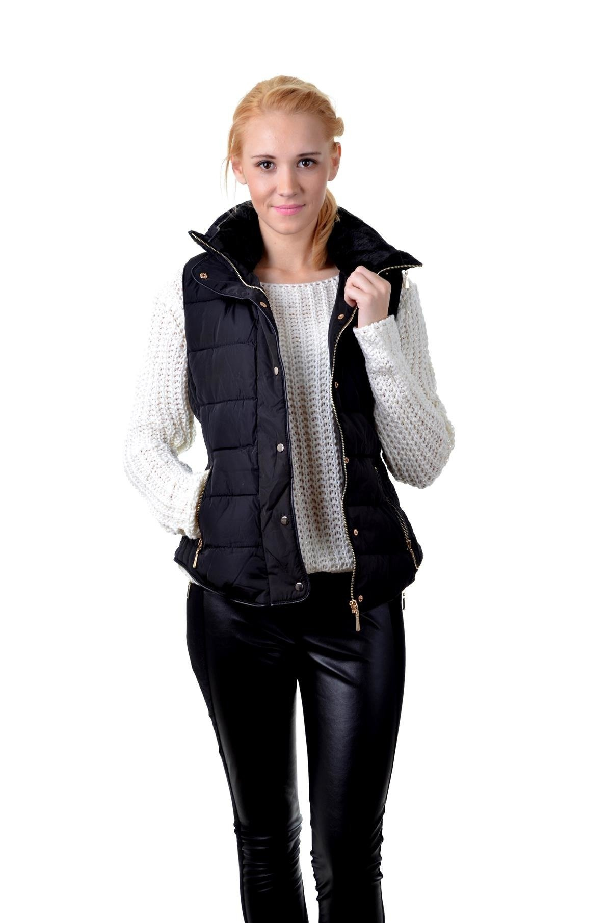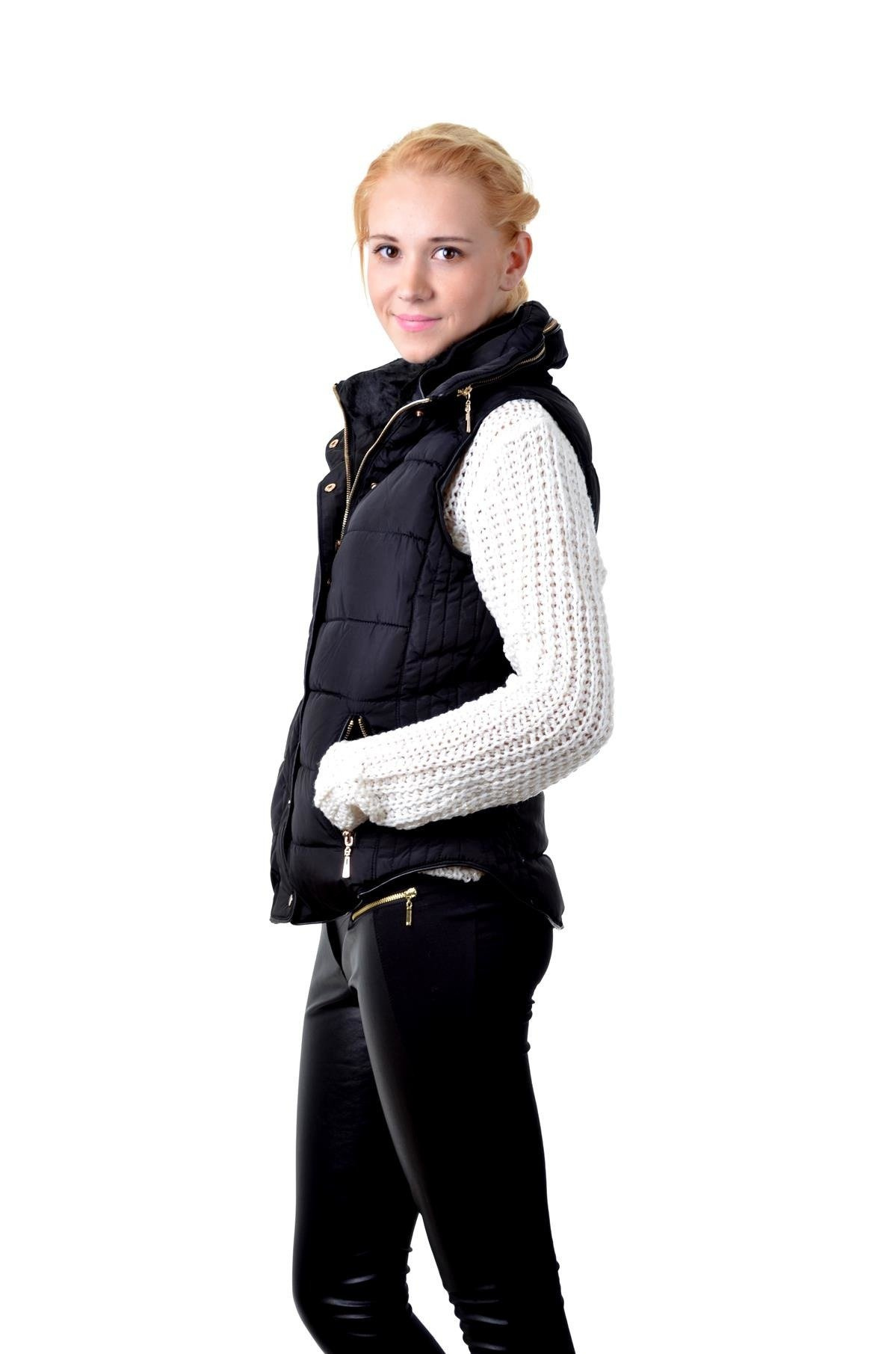 Pikowana, ocieplana od środka kamizelka zapinana na zamek, oraz zatrzaski. Z przodu dwie kieszenie,zapinane na zamek. Całość ze stójką. Idealna na chłodniejsze dni.