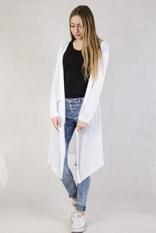 Biała narzutka z asymetrycznymi bokami