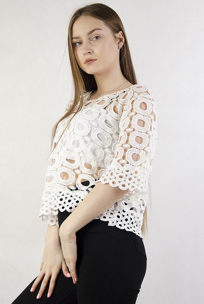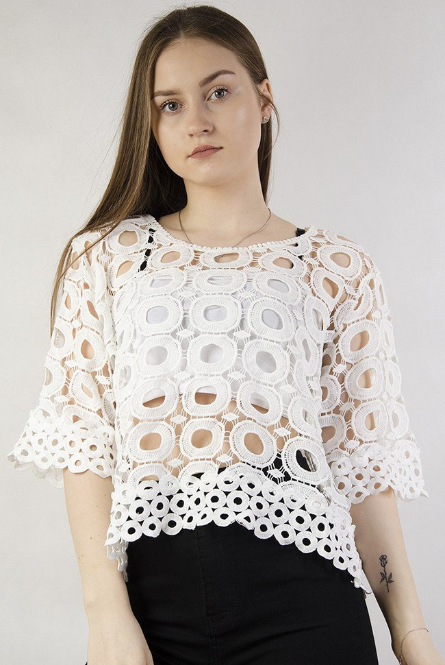 Biała bluzka w powycinane kółka