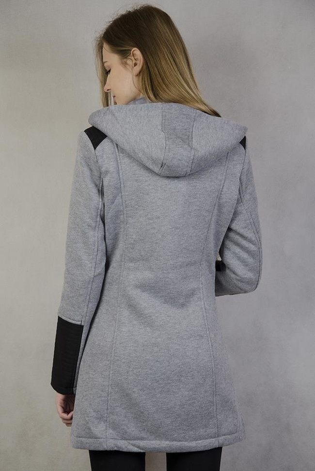 Jasnoszary płaszcz ze skóropodobnymi wstawkami