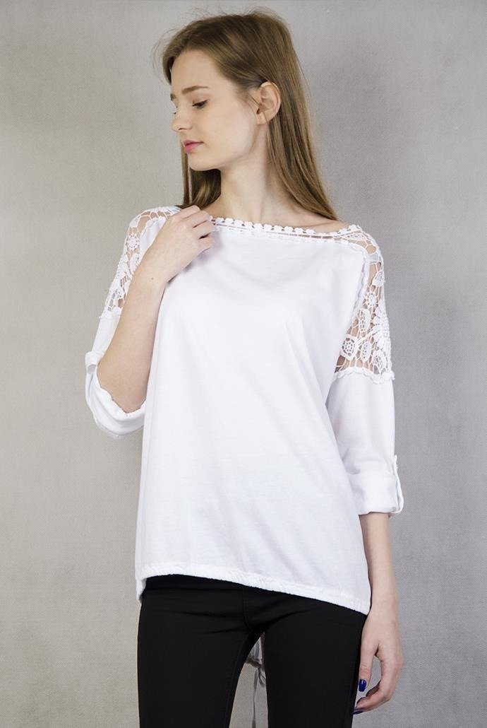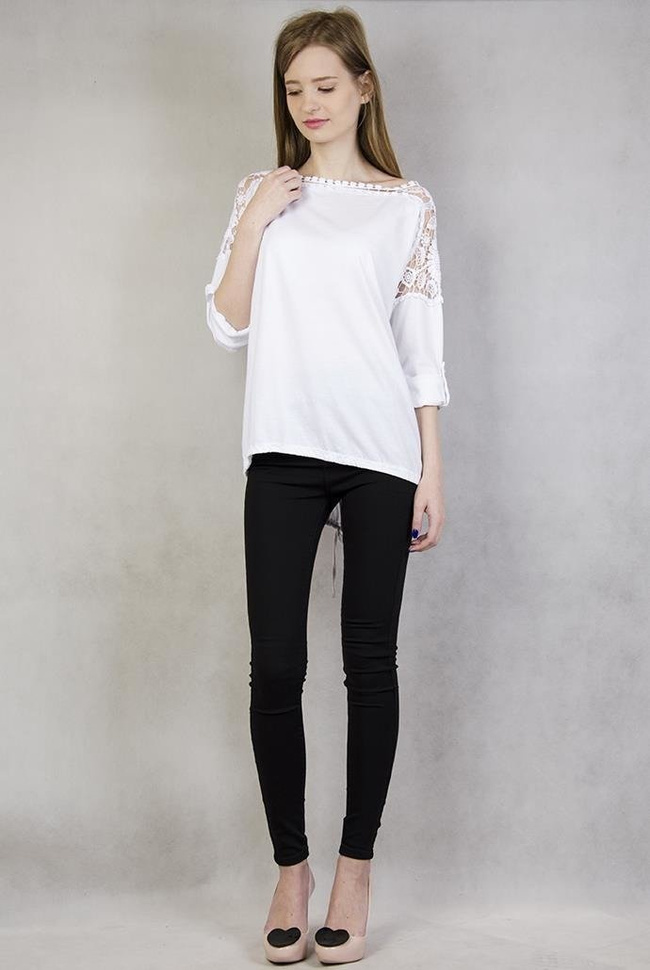 Biała, asymetryczna bluzka z ozdobnym haftem na ramionach