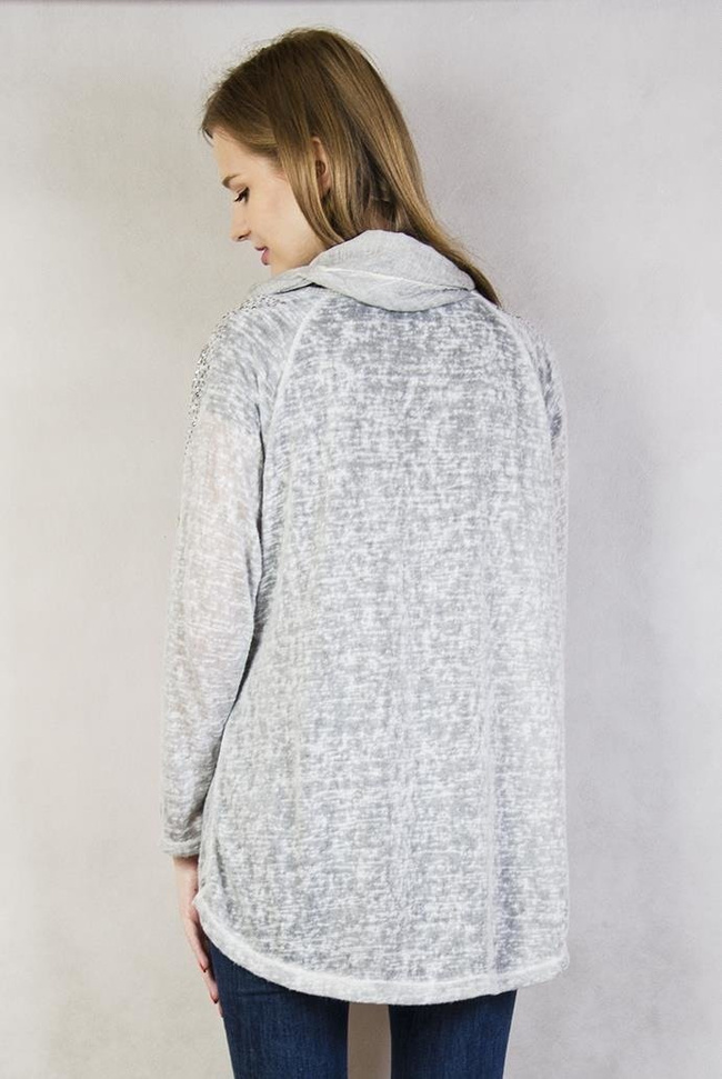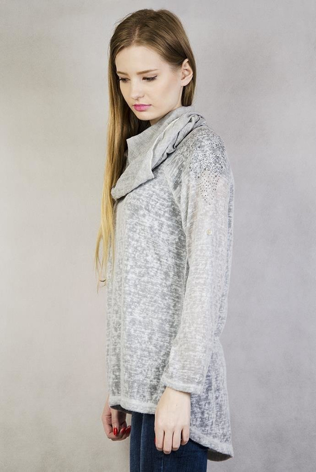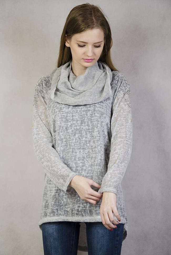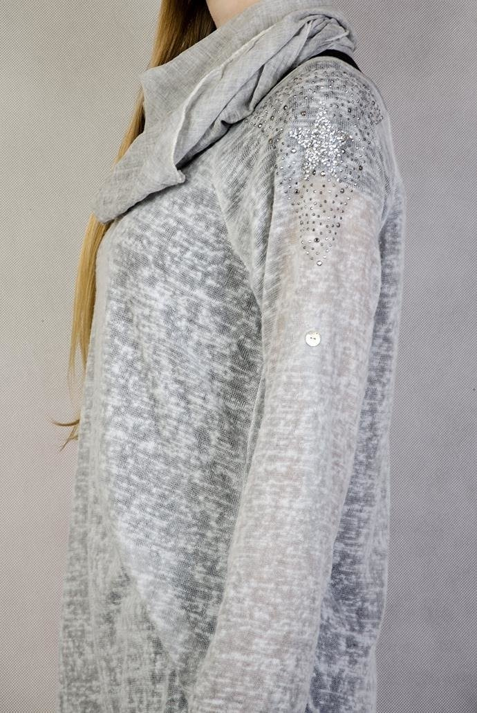 Jasnoszara bluzka z szalem i serduszkiem na ramieniu