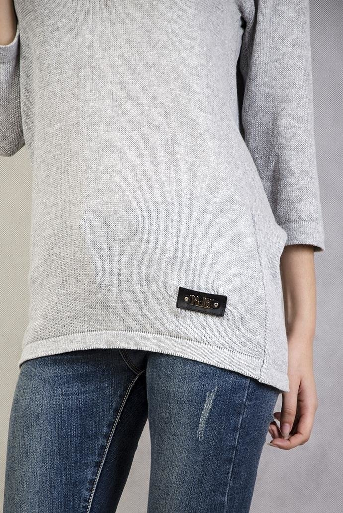 Szary sweterek z wstążką na plecach, rękaw 7/8
