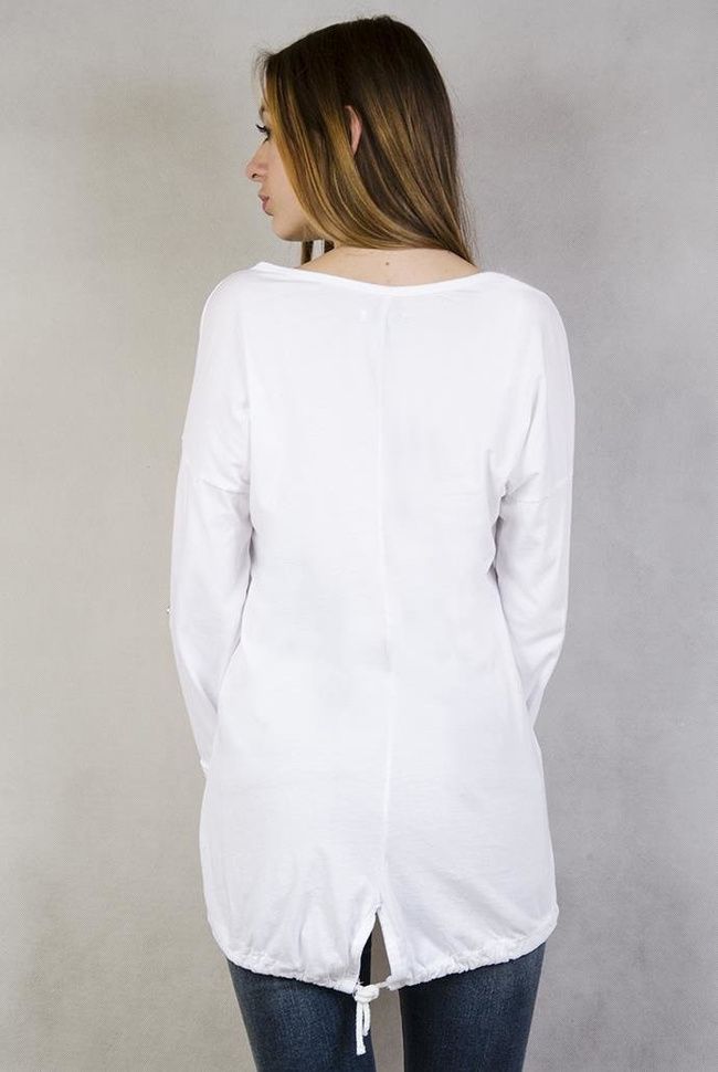 Biała bluzka z podwijanymi rękawami i ażurową kieszonką