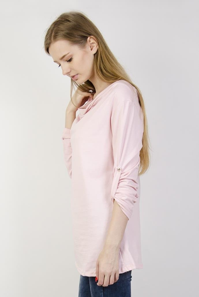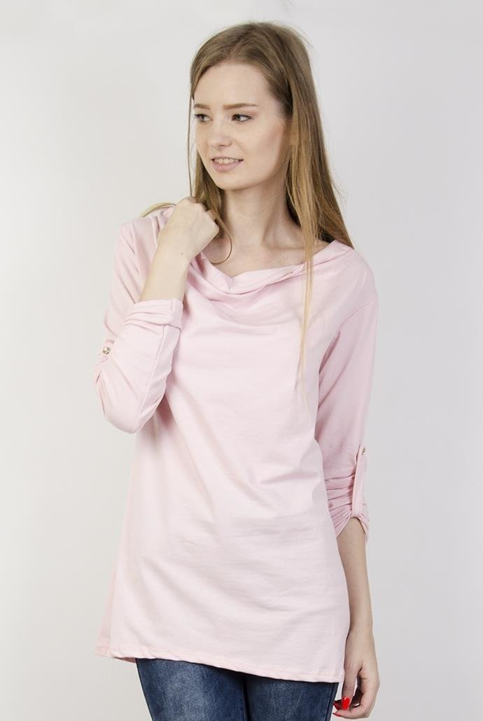 Różowa bluzka z dekoltem i podwiniętymi rękawami