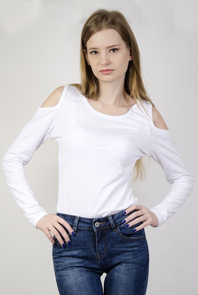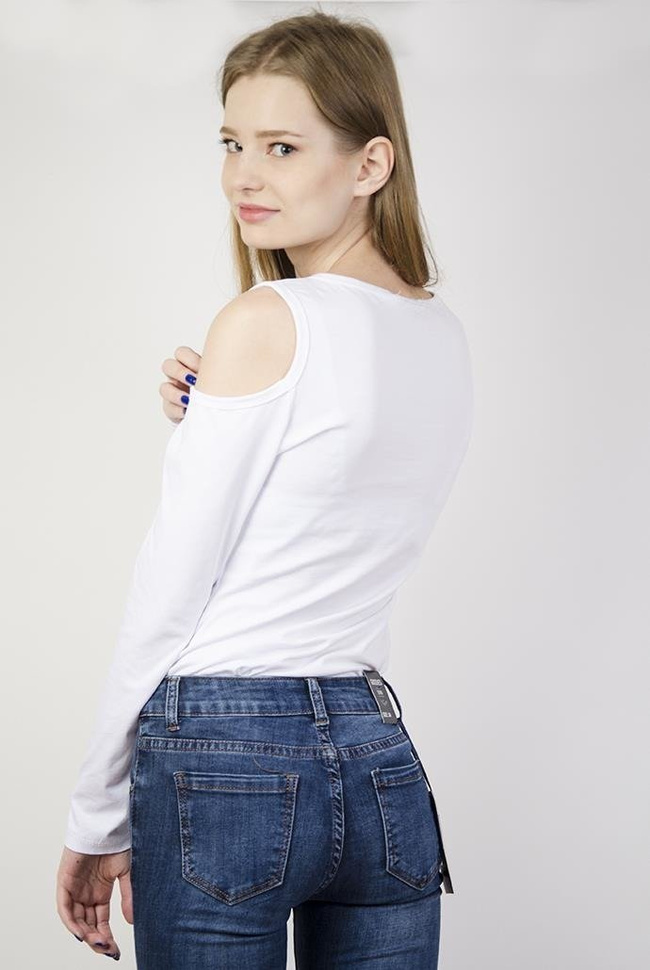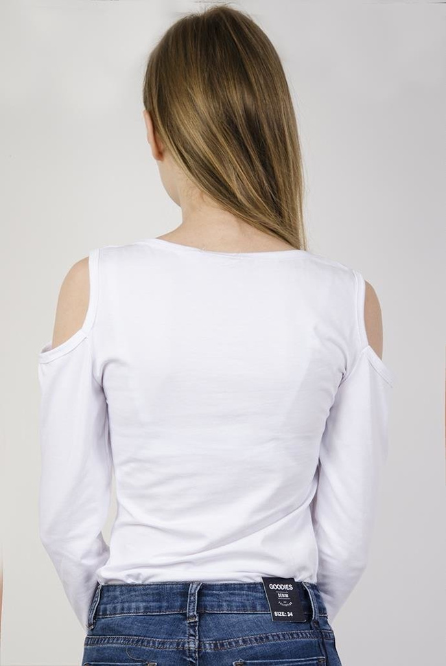 Białe body z wycięciami na ramionach, zapinane na zatrzaski