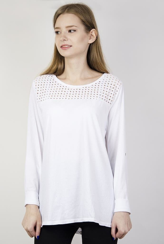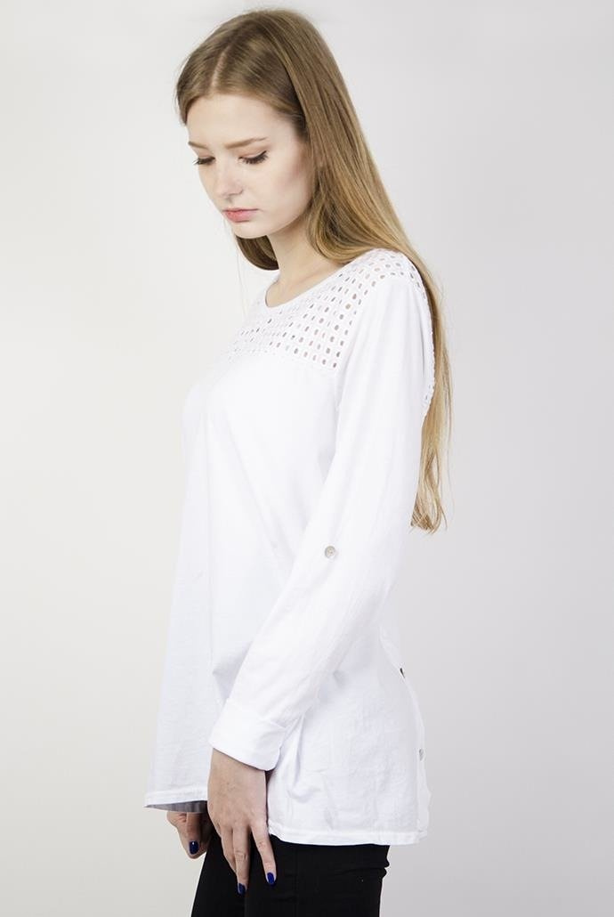 Biała bluzka ze zdobieniami i guzikami z tyłu