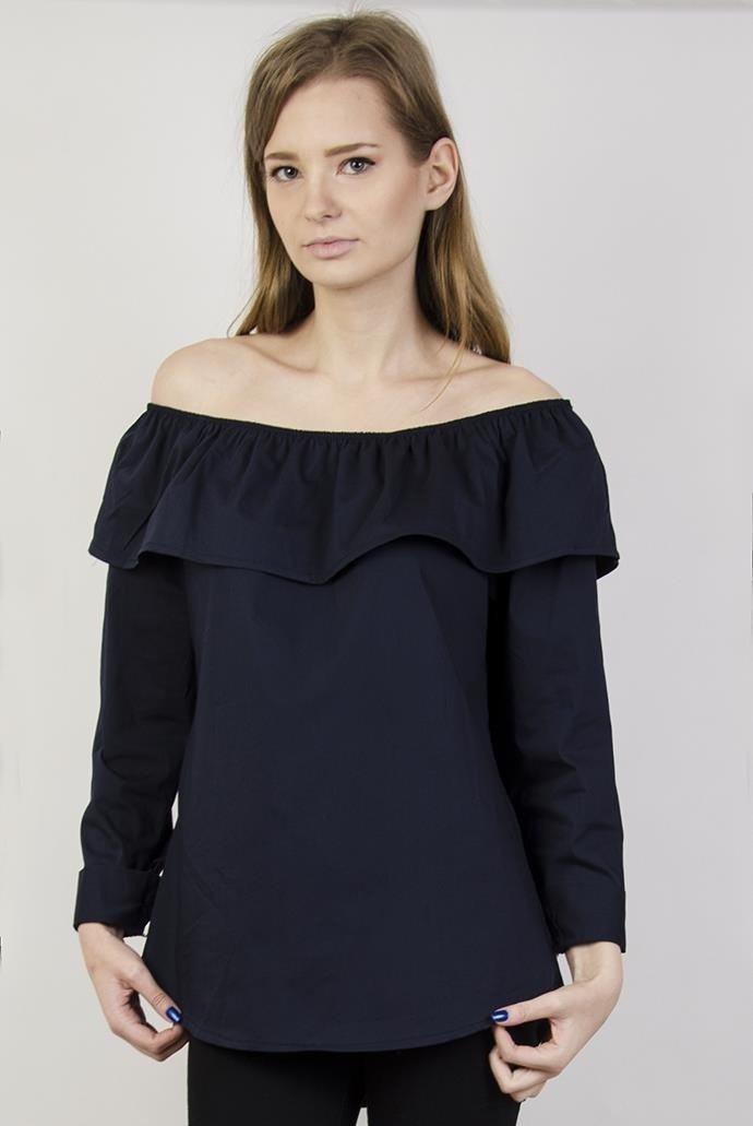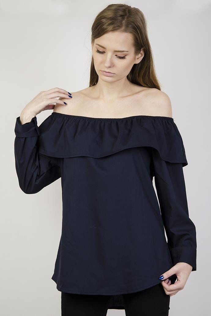 Koszula granatowa z hiszpańskim dekoltem