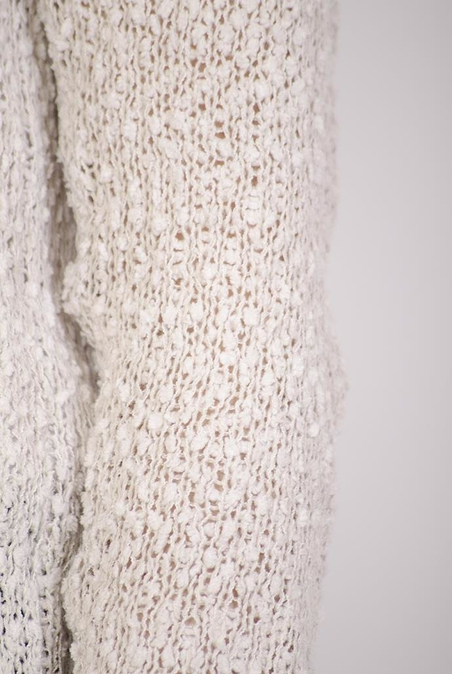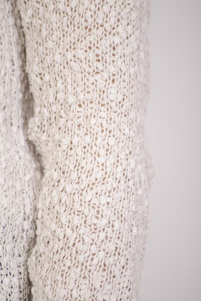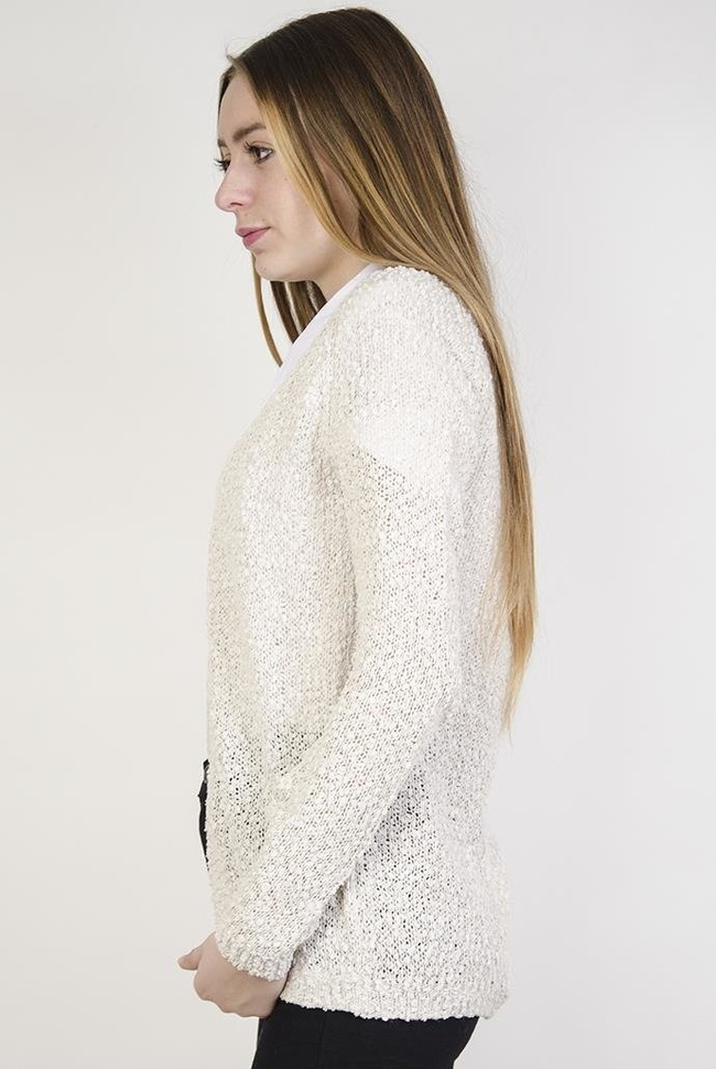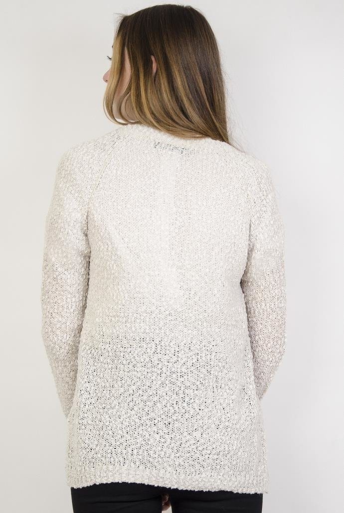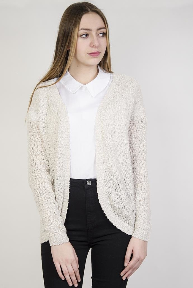 Jasnoszary sweterek narzutka ze ściągaczami przy rękawach oraz na dole