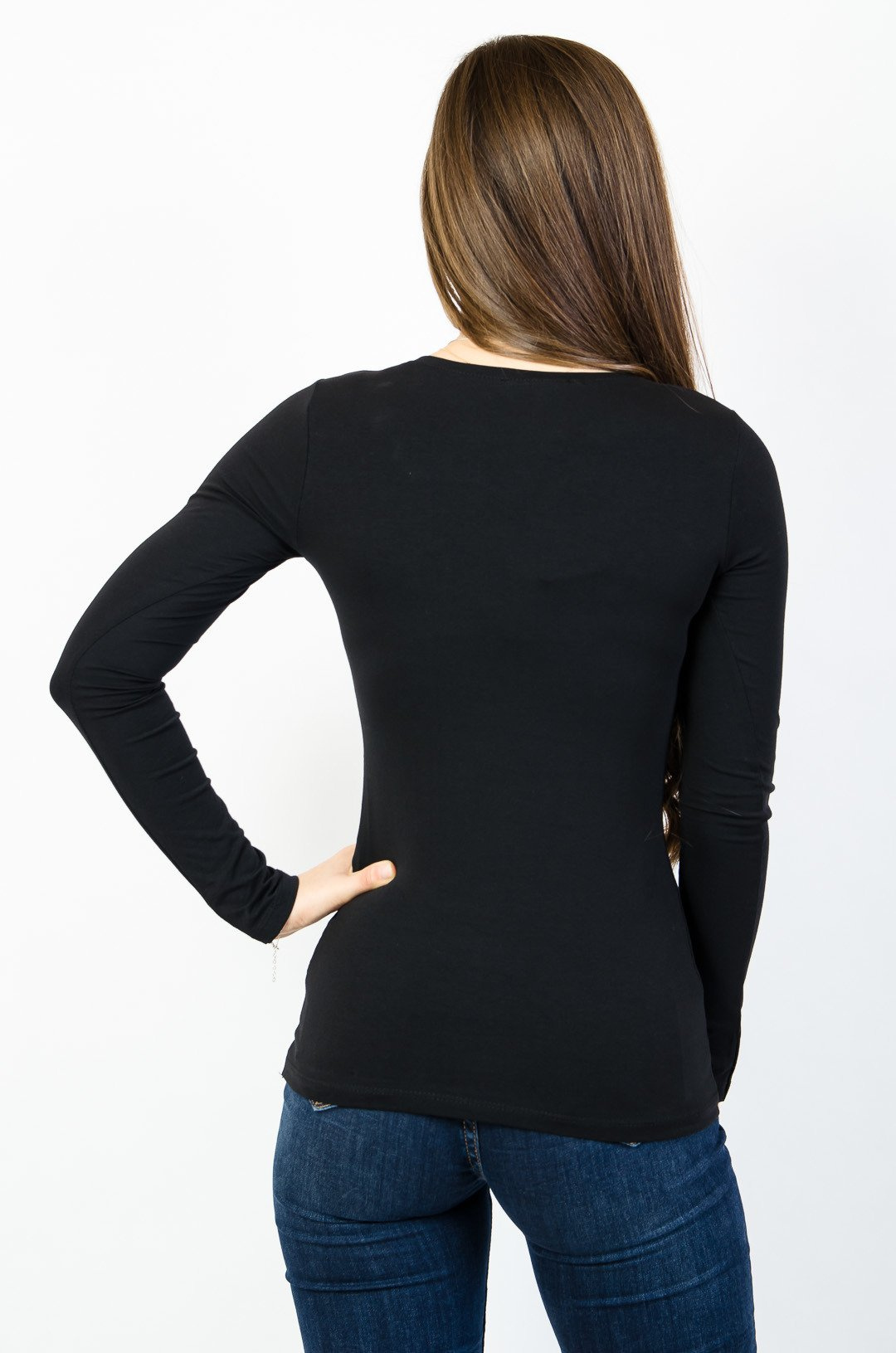 Czarna bluzka typu basic z długim rękawem.