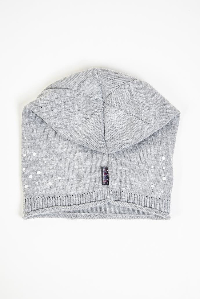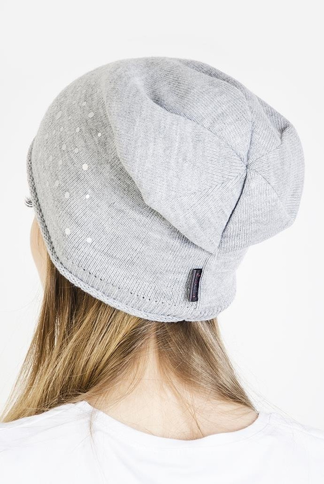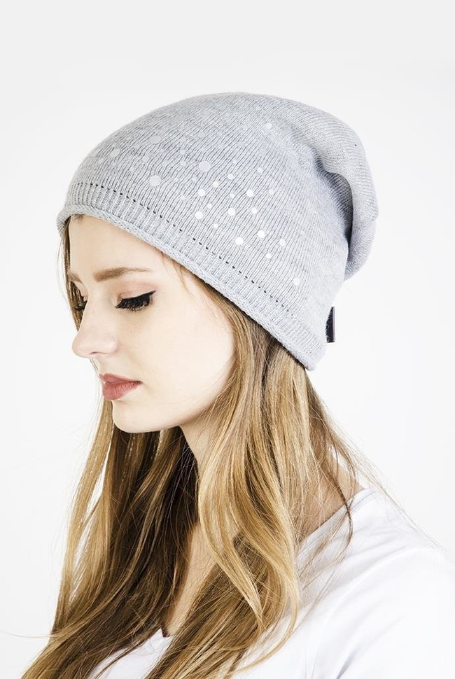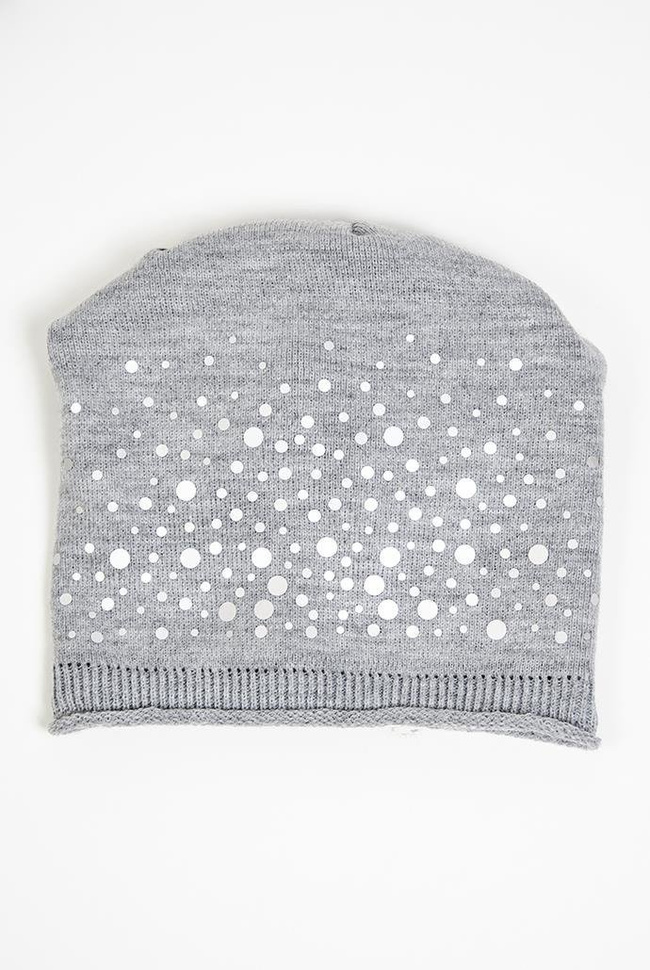 Jasnoszara czapka ze srebrnymi kropkami