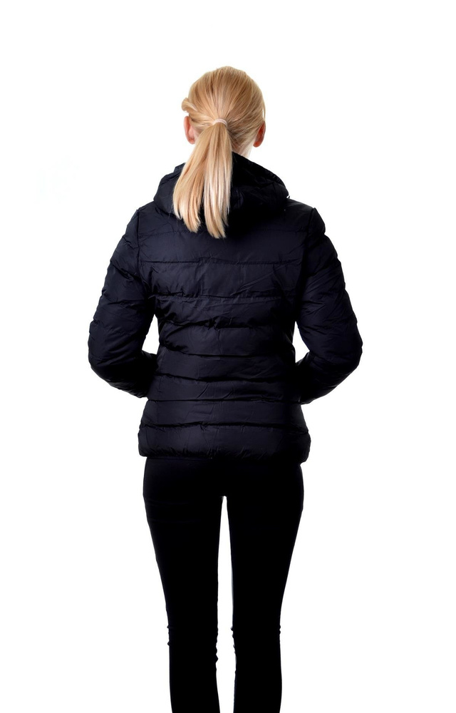 Pikowana, ciepła kurtka z kapturem, zapinana na zamek. Z przodu dwie kieszenie. Idealna na chłodniejsze dni.