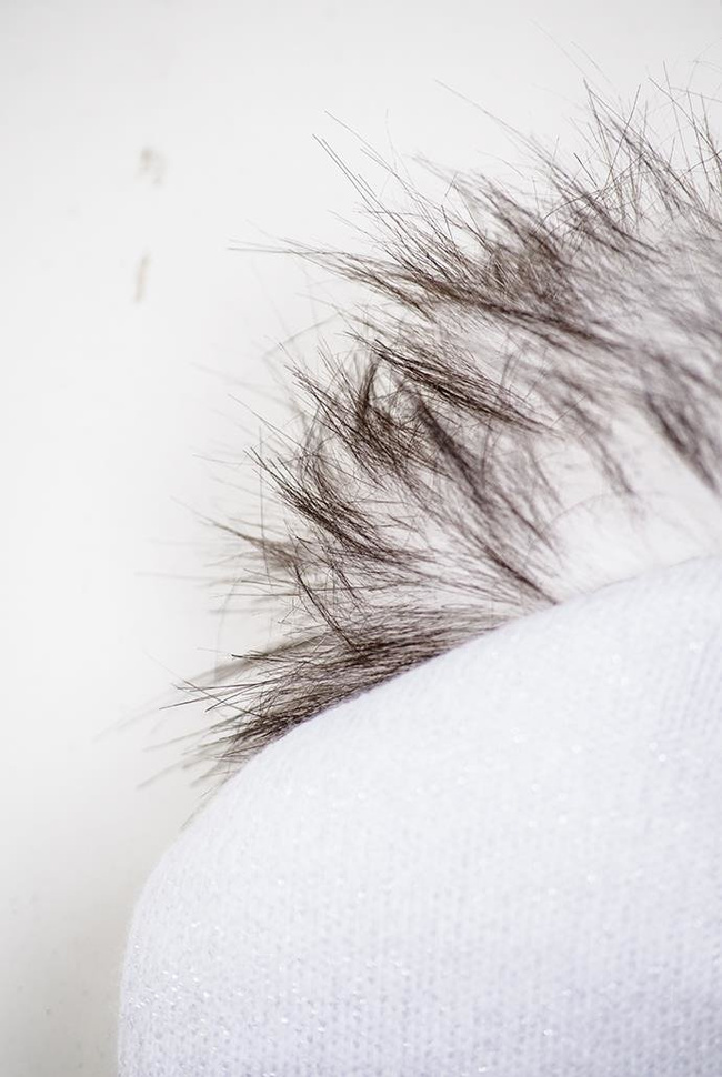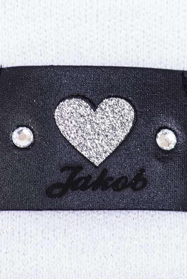 Biała czapka z wszywką z serduszkiem i pomponem.