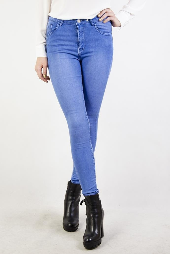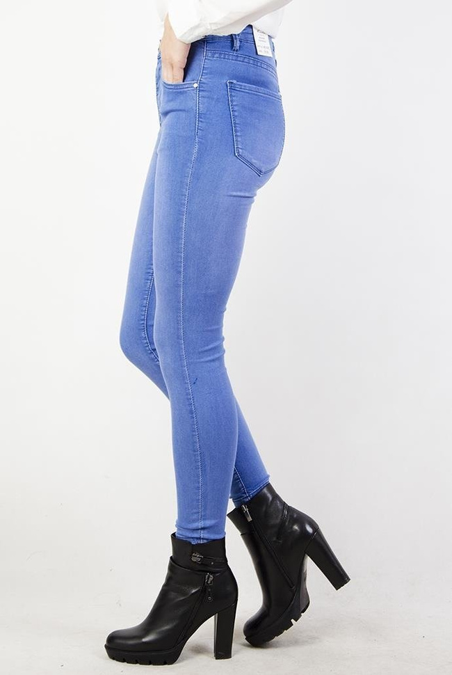 Jasnoniebieskie przylegające spodnie jeansy z wysokim stanem.