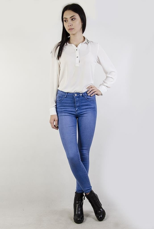 Jasnoniebieskie przylegające spodnie jeansy z wysokim stanem