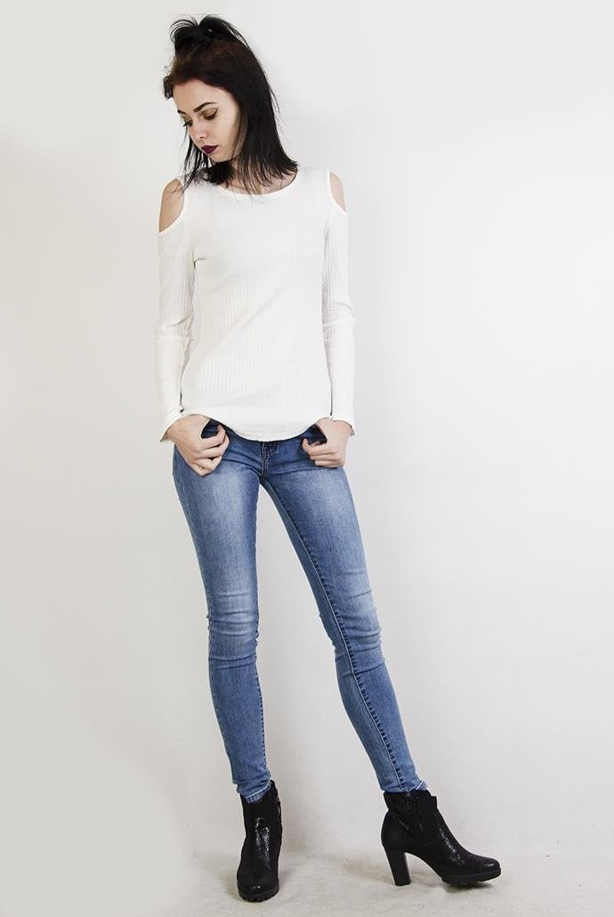Biała prążkowana bluzka z wycięciami na ramionach