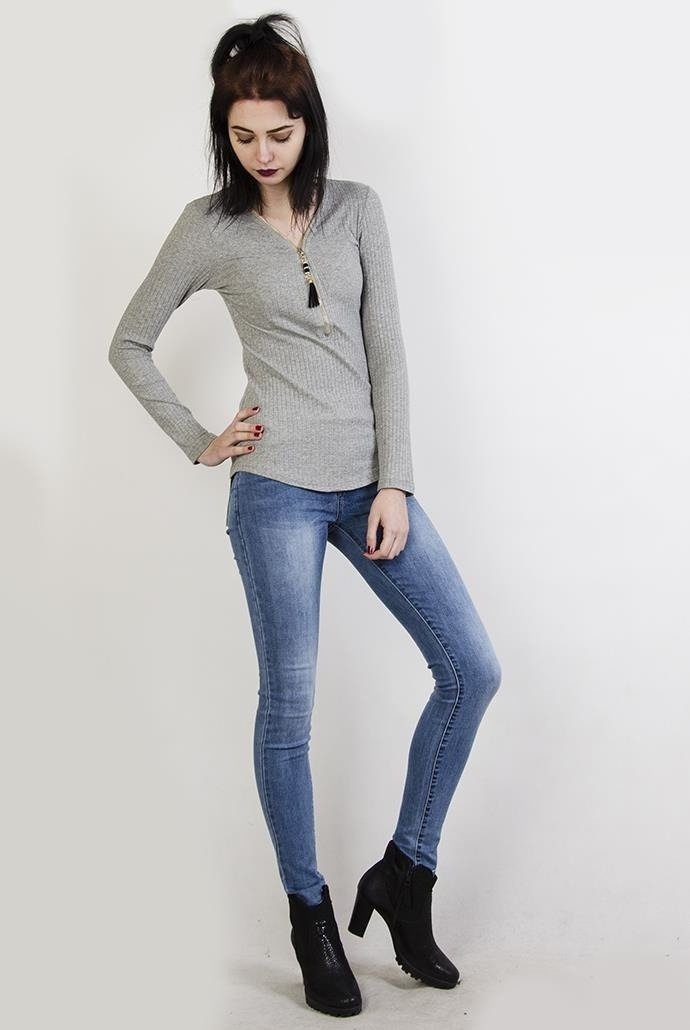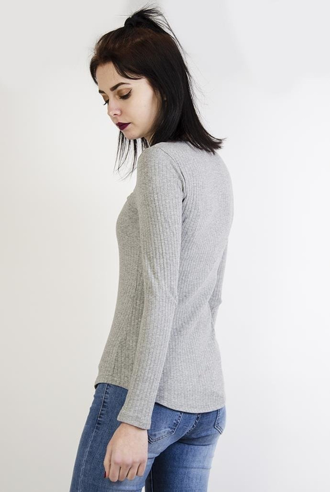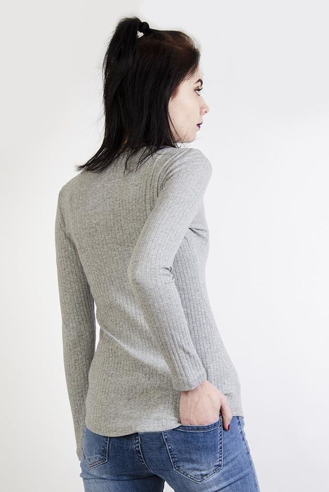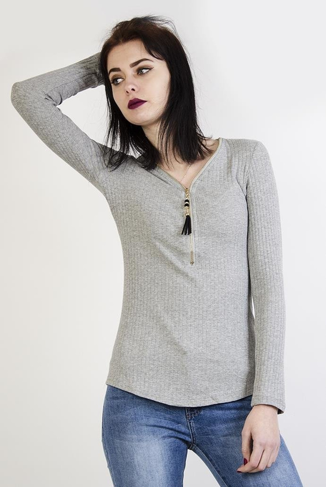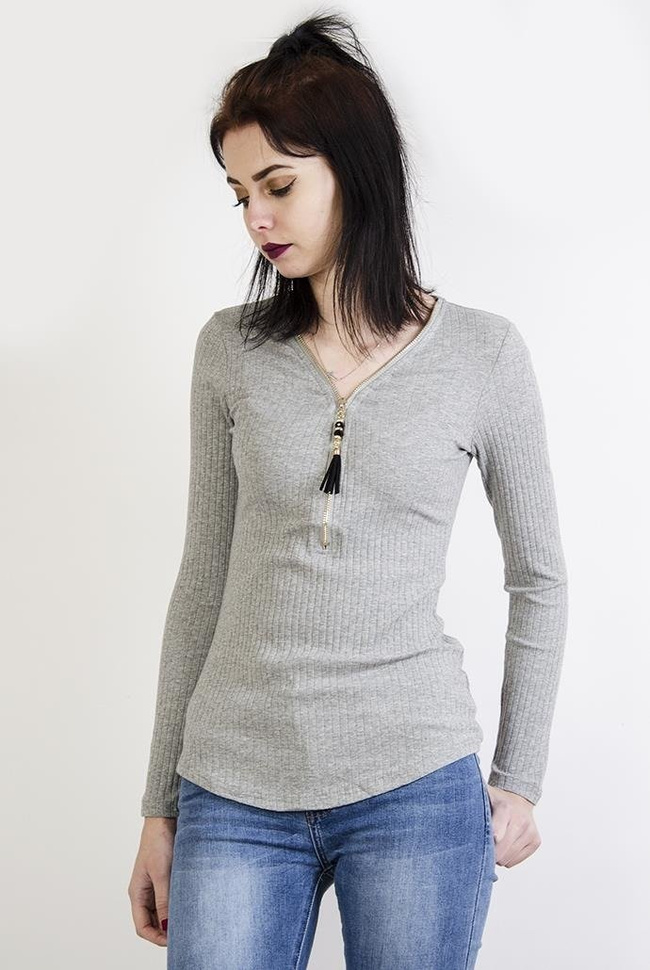 Szara prążkowana bluzka zapinana na zamek