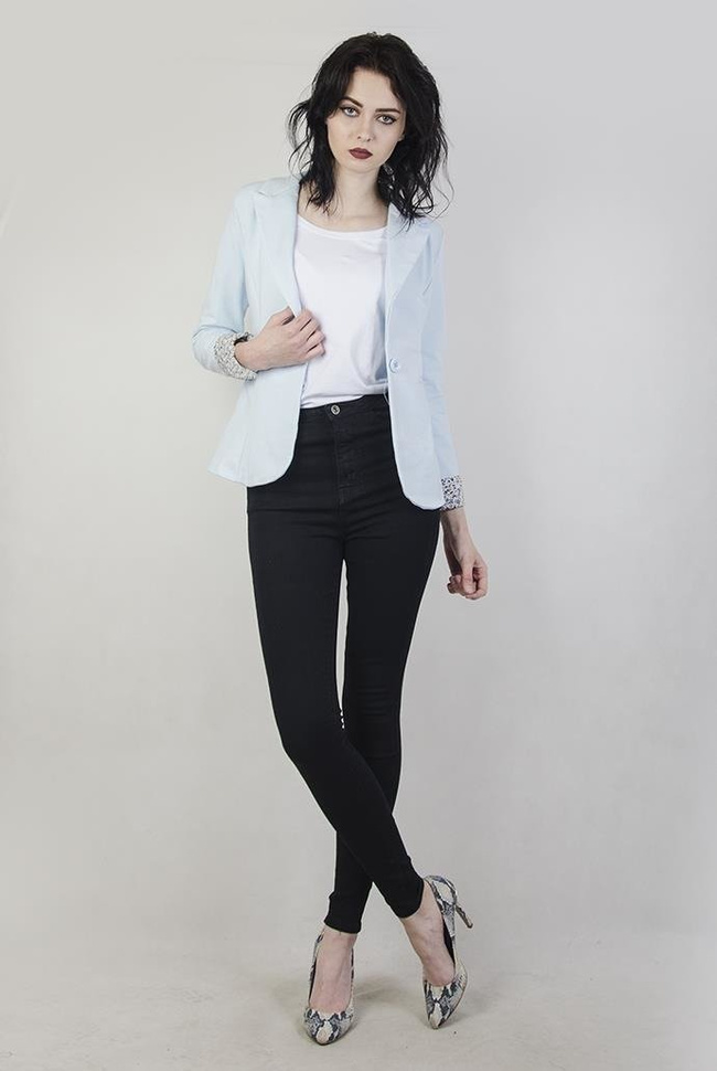 Jasnoniebieska marynarka z kwiatowymi wstawkami
