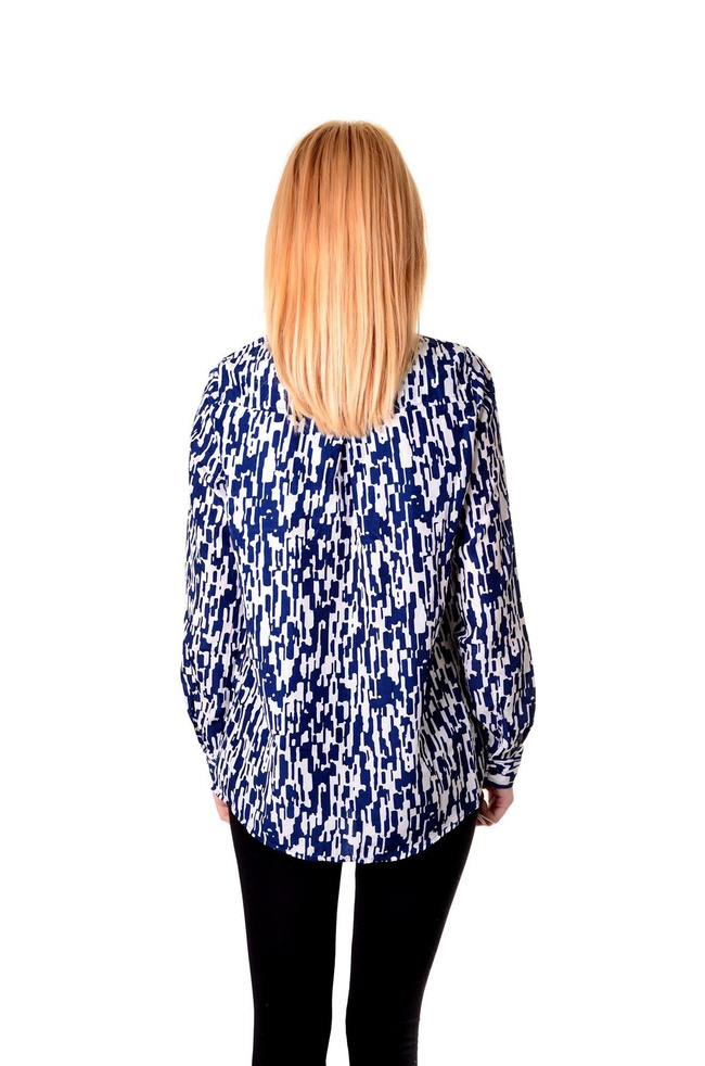 Modna koszula o luźnym fasonie w oryginalny wzór. Koszula idealna do codziennych stylizacji, świetnie wygląda zarówno do jeansów jak i eleganckiej spódnicy.