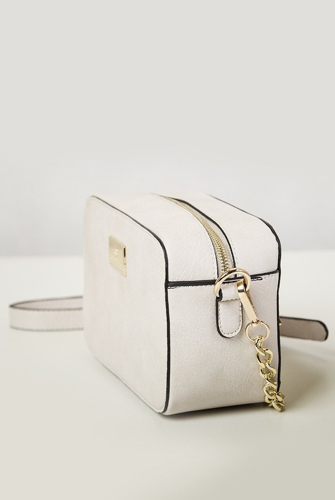 Kremowa usztywniana torebka na łańcuszku