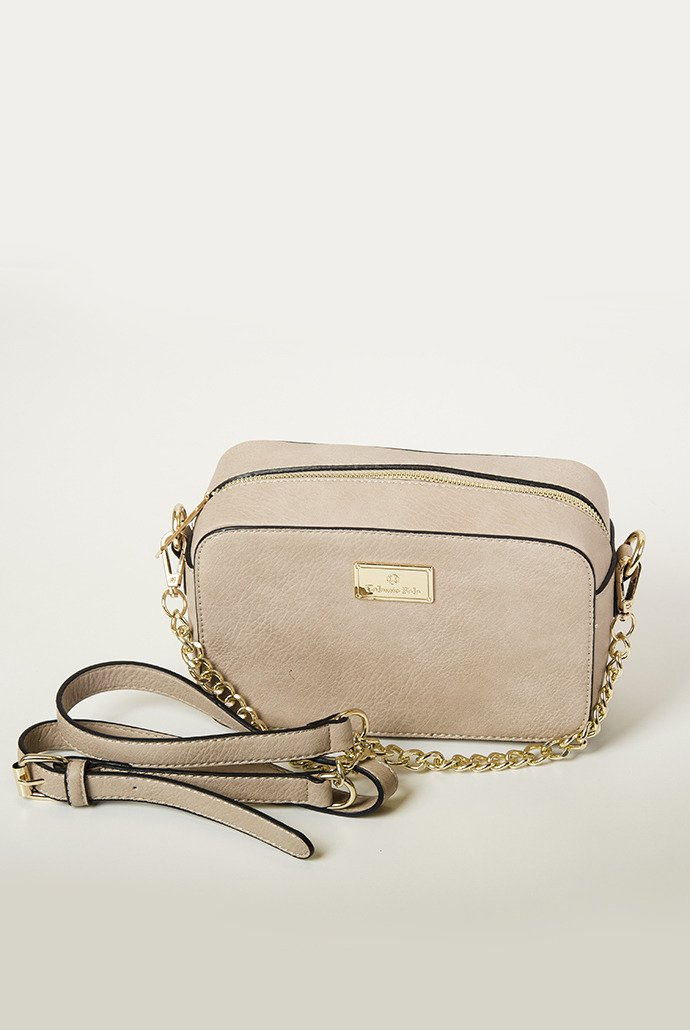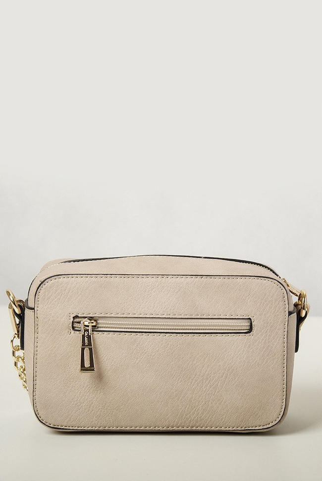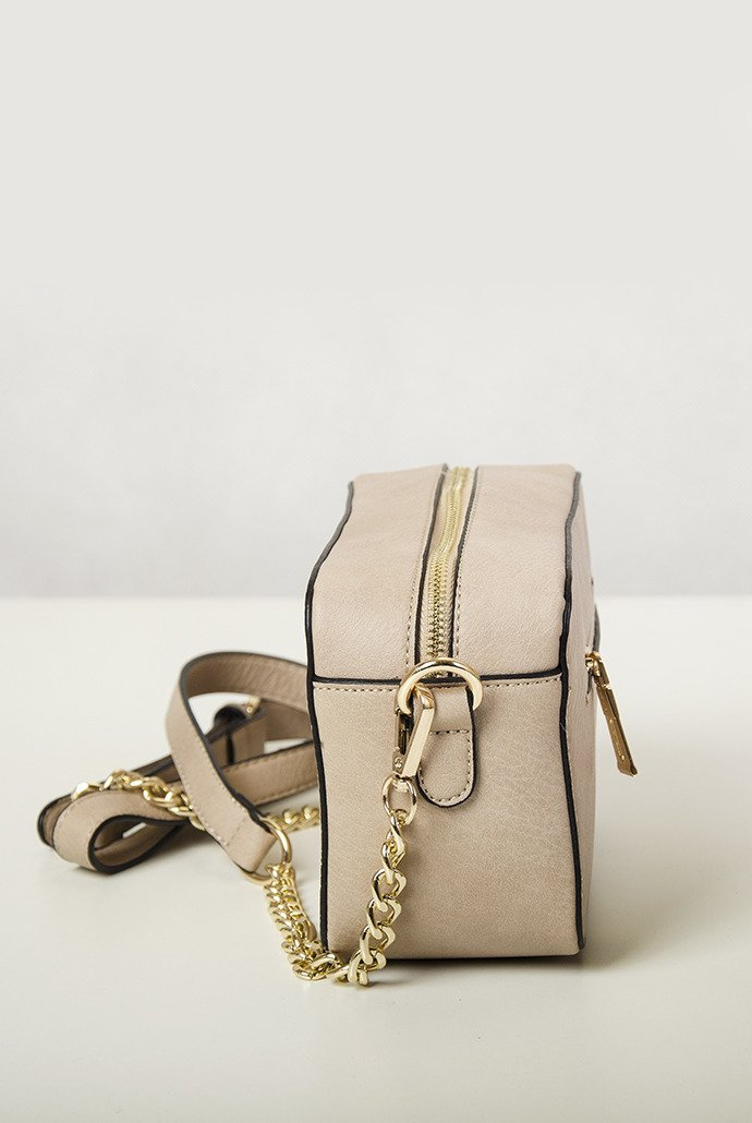 Beżowa usztywniana torebka na łańcuszku. Posiada możliwość regulacji długości paska.