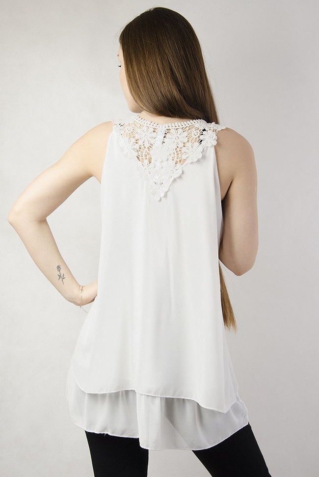 Biała bluzka z ażurowym zdobieniem z tyłu. Bez wisiorka