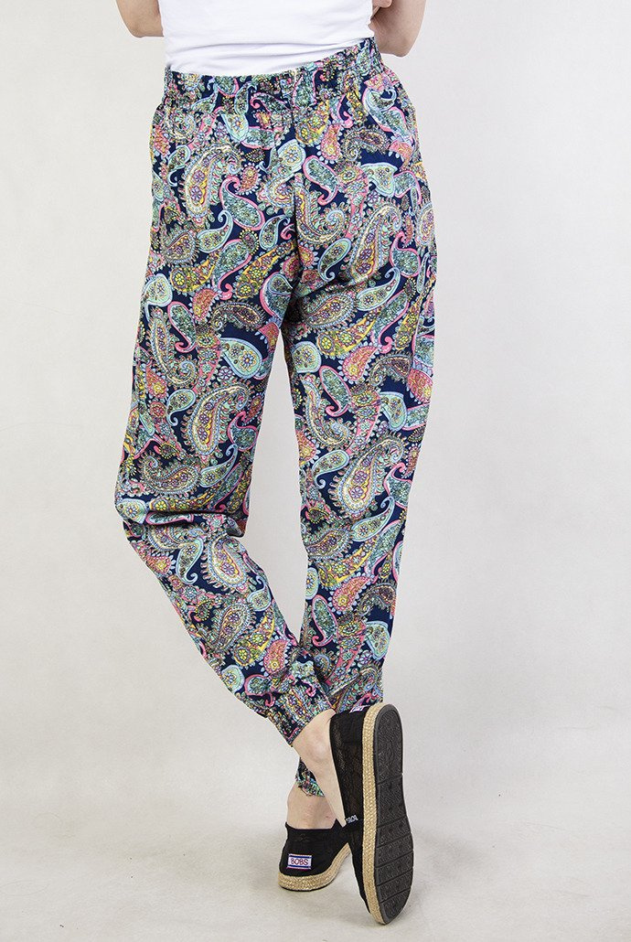 Wzorzyste spodnie alladynki niebiesko-granatowe