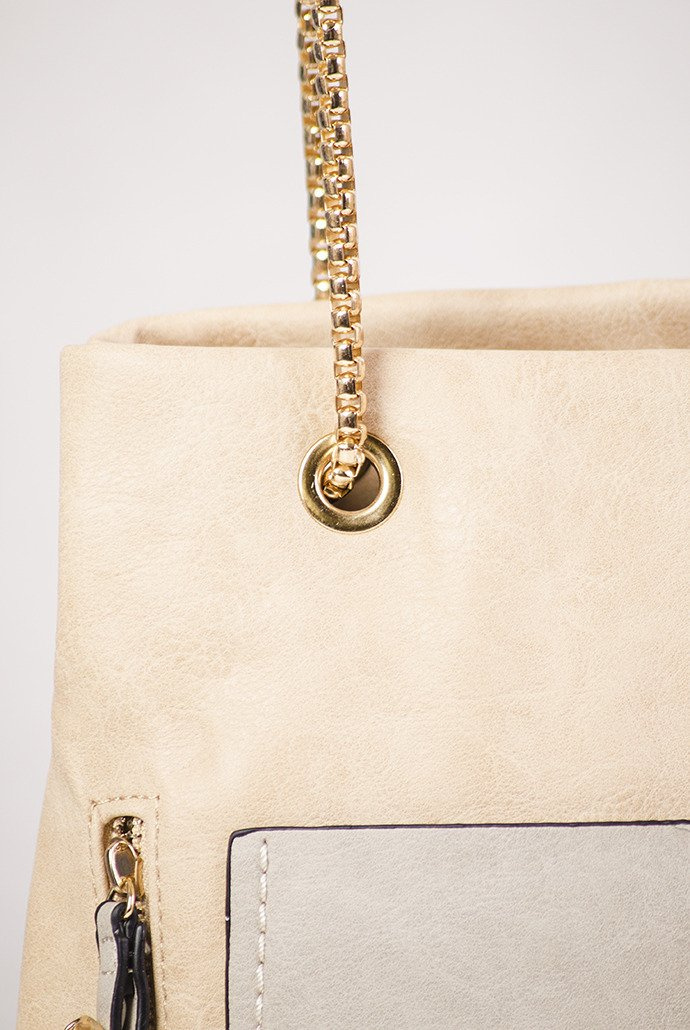 Torebka posiada liczne przegródki np. na klucze czy portfel, oraz dwie główne komory.