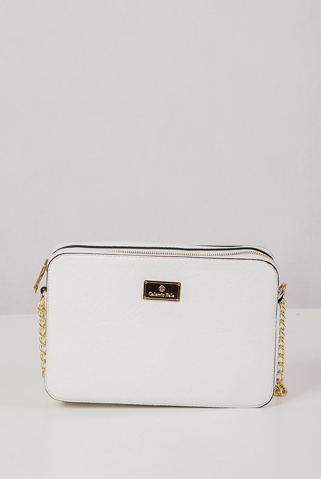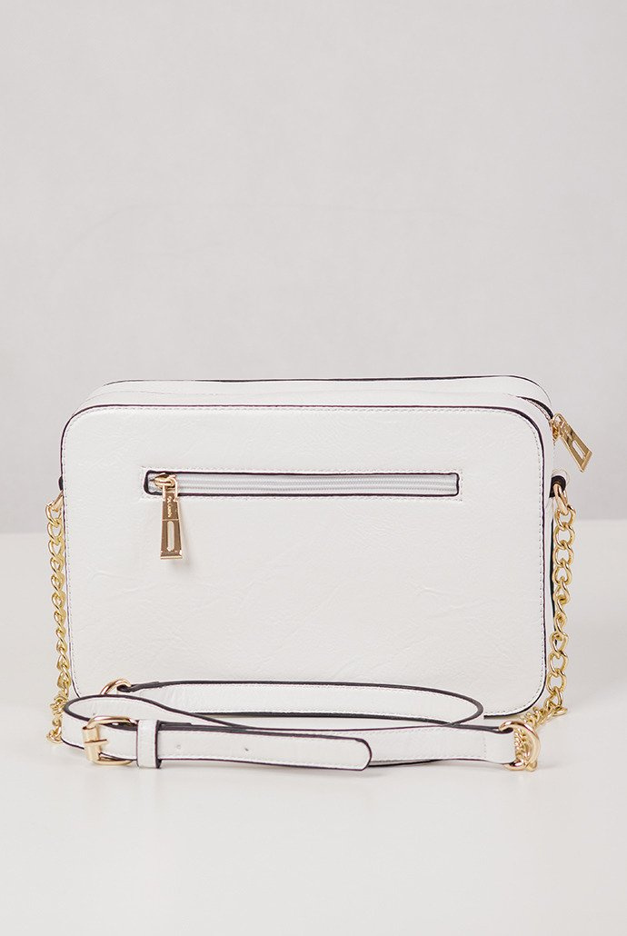 Kremowa, usztywniana torebka ze złotym łańcuszkiem, którego długość można regulować. W środku liczne przegródki na klucze czy portfel.