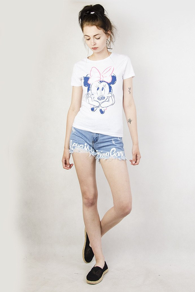 Biała bluzka z niebieskim szkicem Minnie Mouse z kolekcji Disney.