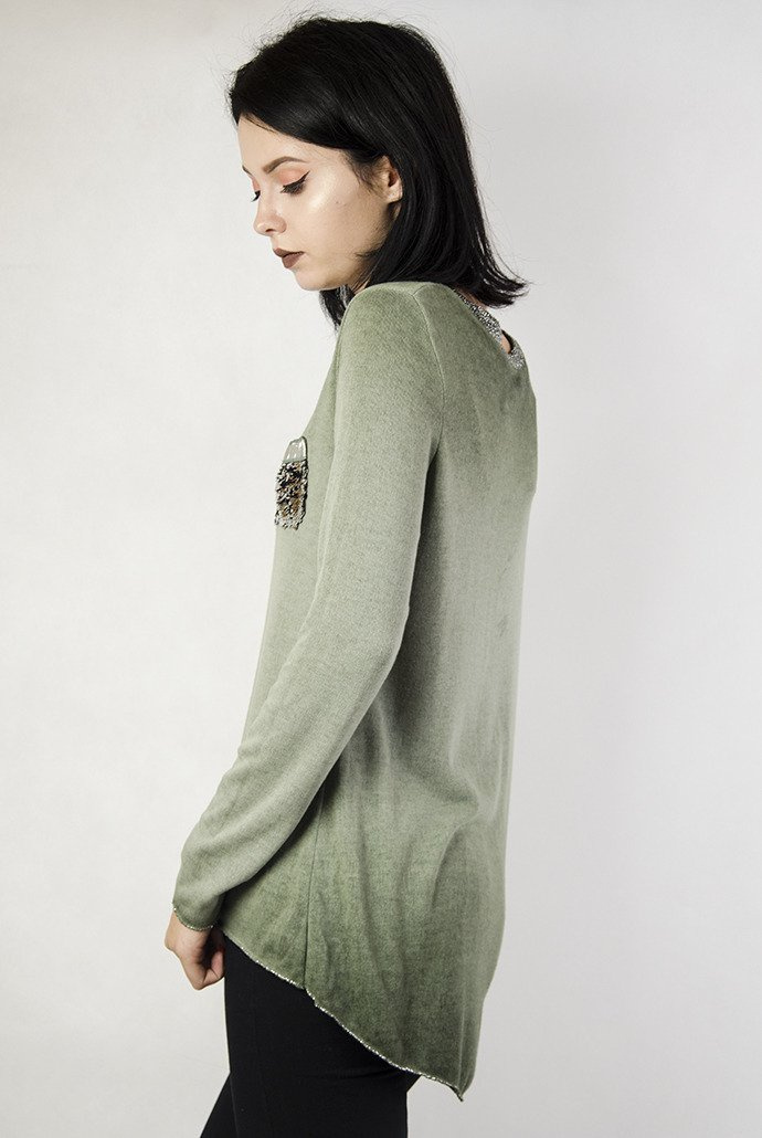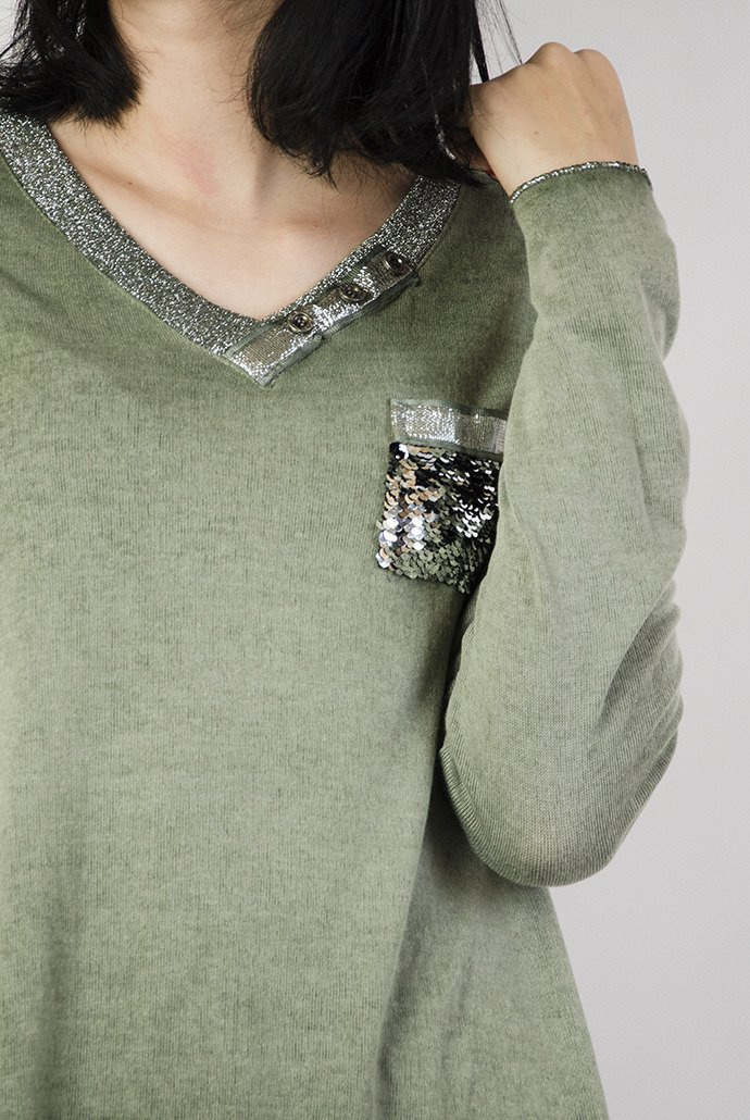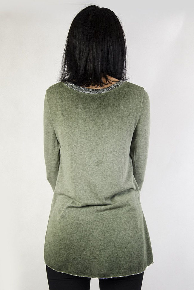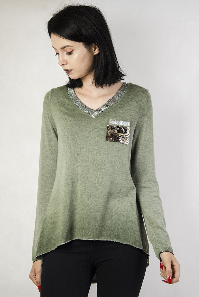 Zielona bluzka z brokatowym dekoltem