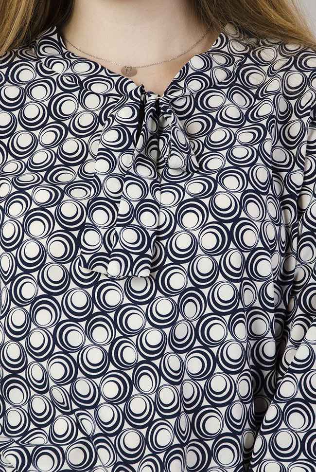 Posiada wiązanie przy dekolcie oraz gumkę na dole i przy rękawie.