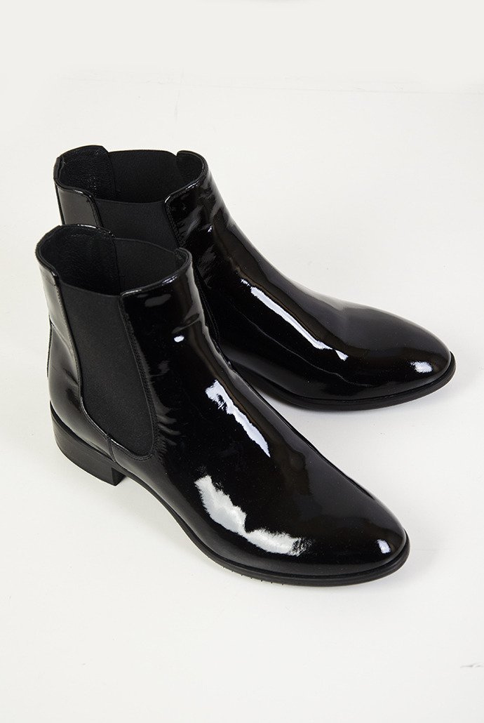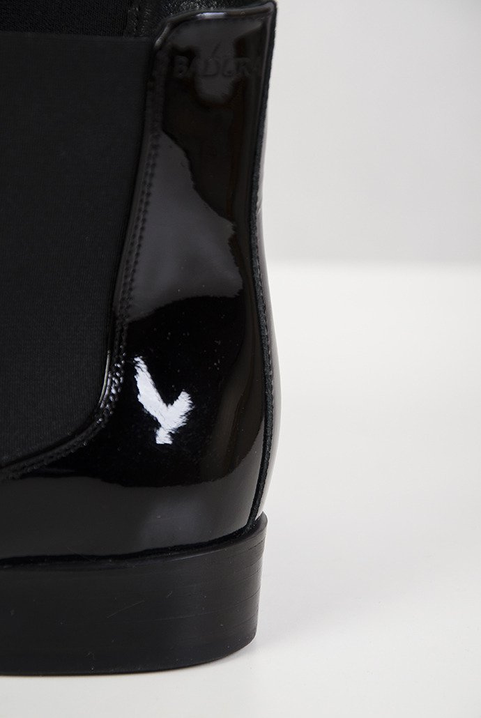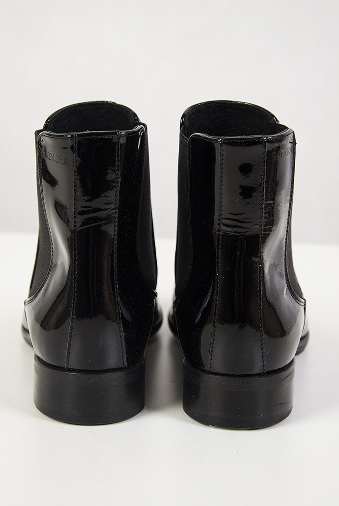 Zgrabne botki firmy Badura. Cholewka chroni przed chłodem, to skóra naturalna - lakierowana.