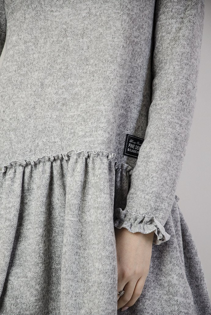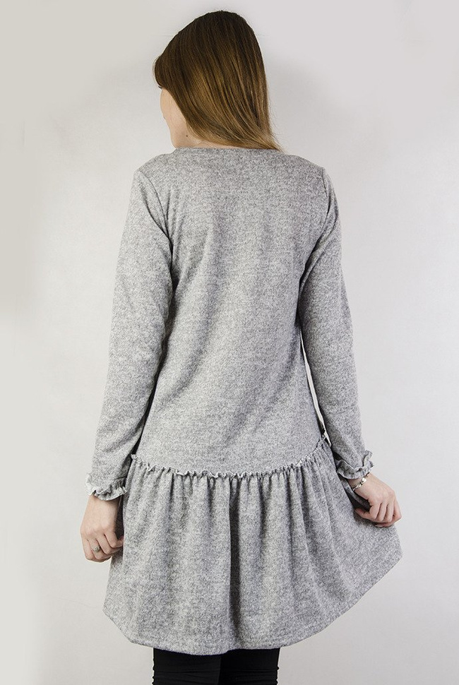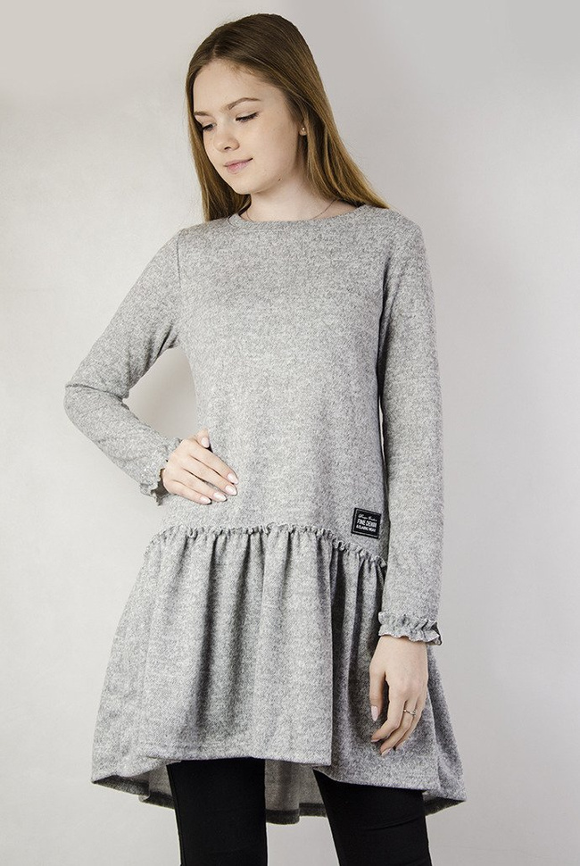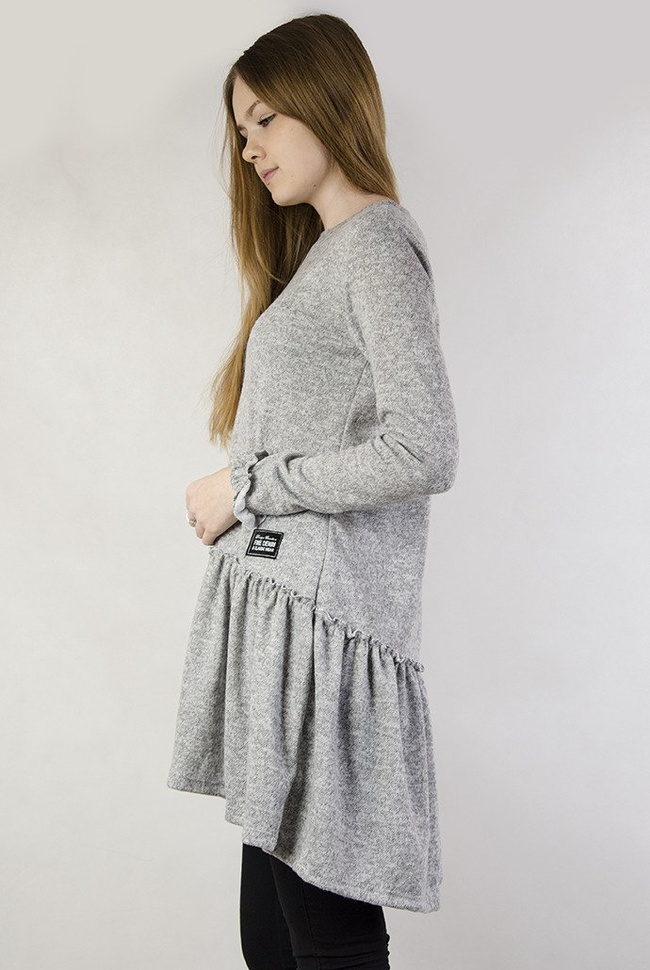 Jasnoszara tunika z rozkloszowanym dołem.
